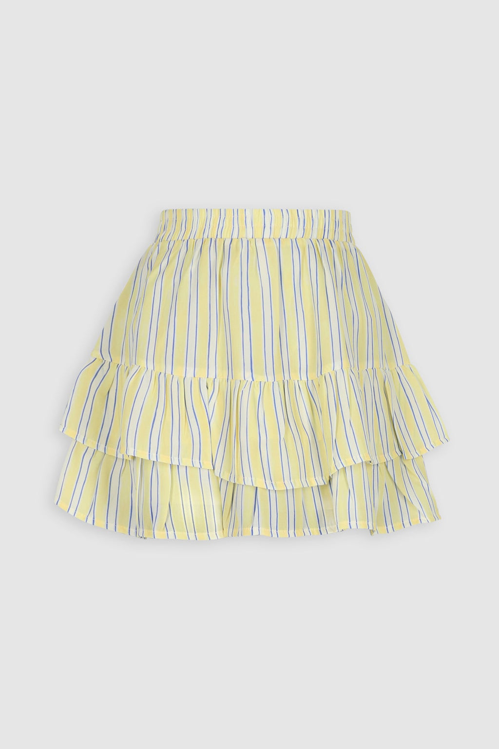 Deze gele Naia rok van Nobell' is een trendy eyecatcher voor elk tienermeisje. Perfect voor een stoere, casual look die toch speels is. De opvallende print en comfortabele pasvorm maken deze rok een must-have voor de garderobe. Draag hem dagelijks voor een stralende uitstraling.