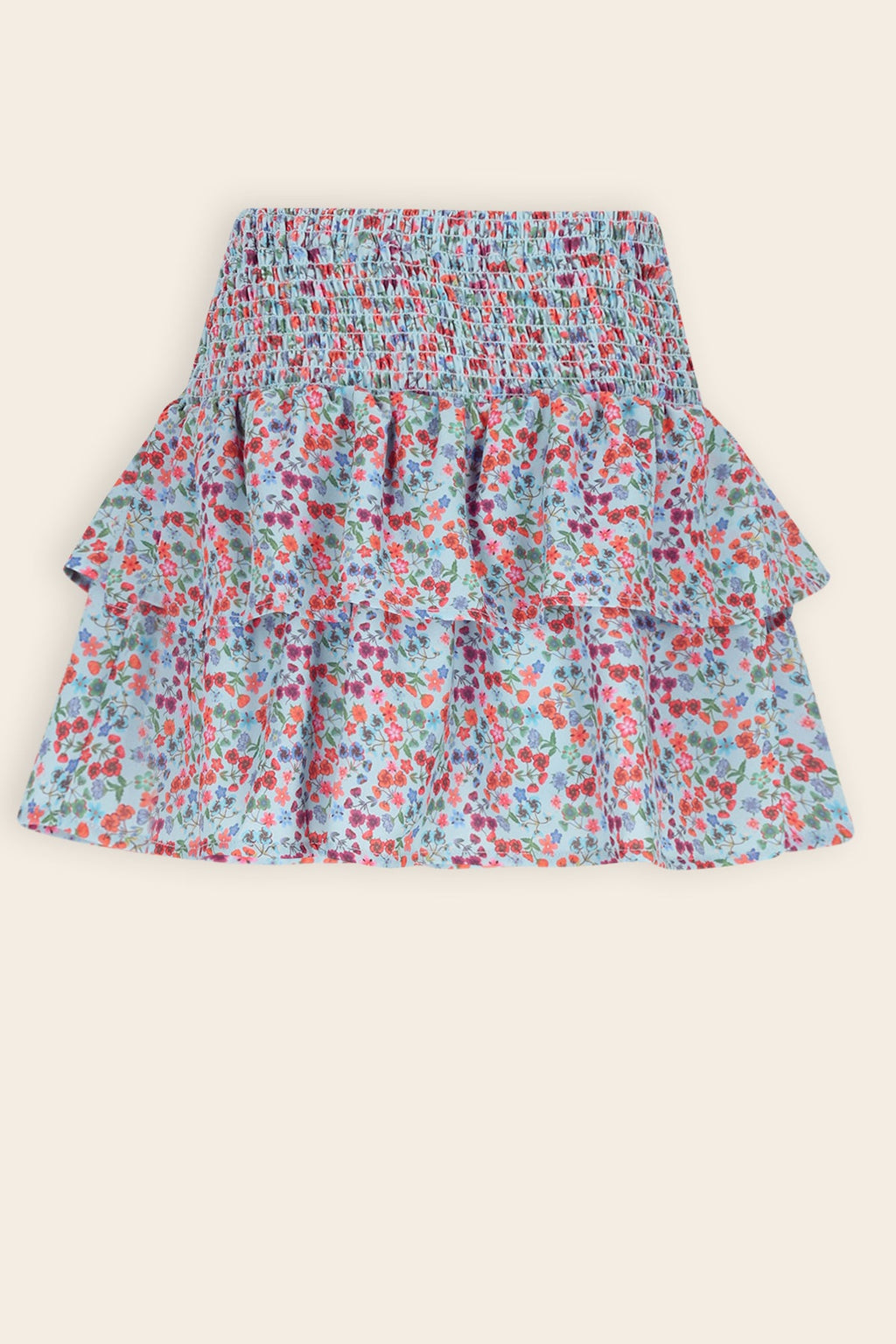 kort geprint rokje met een hoge gesmokte tailleband. De rok is gevoerd met een zachte jersey broek! Rokje met 2 lagen om te twirlen en shinen, Gemaakt van 60% gerecycled polyester