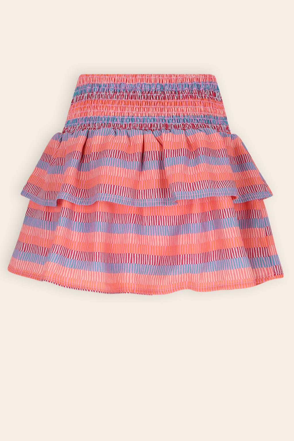 kort geprint rokje met een hoge gesmokte tailleband. De rok is gevoerd met een zachte jersey broek! Rokje met 2 lagen om te twirlen en shinen, Gemaakt van 60% gerecycled polyester