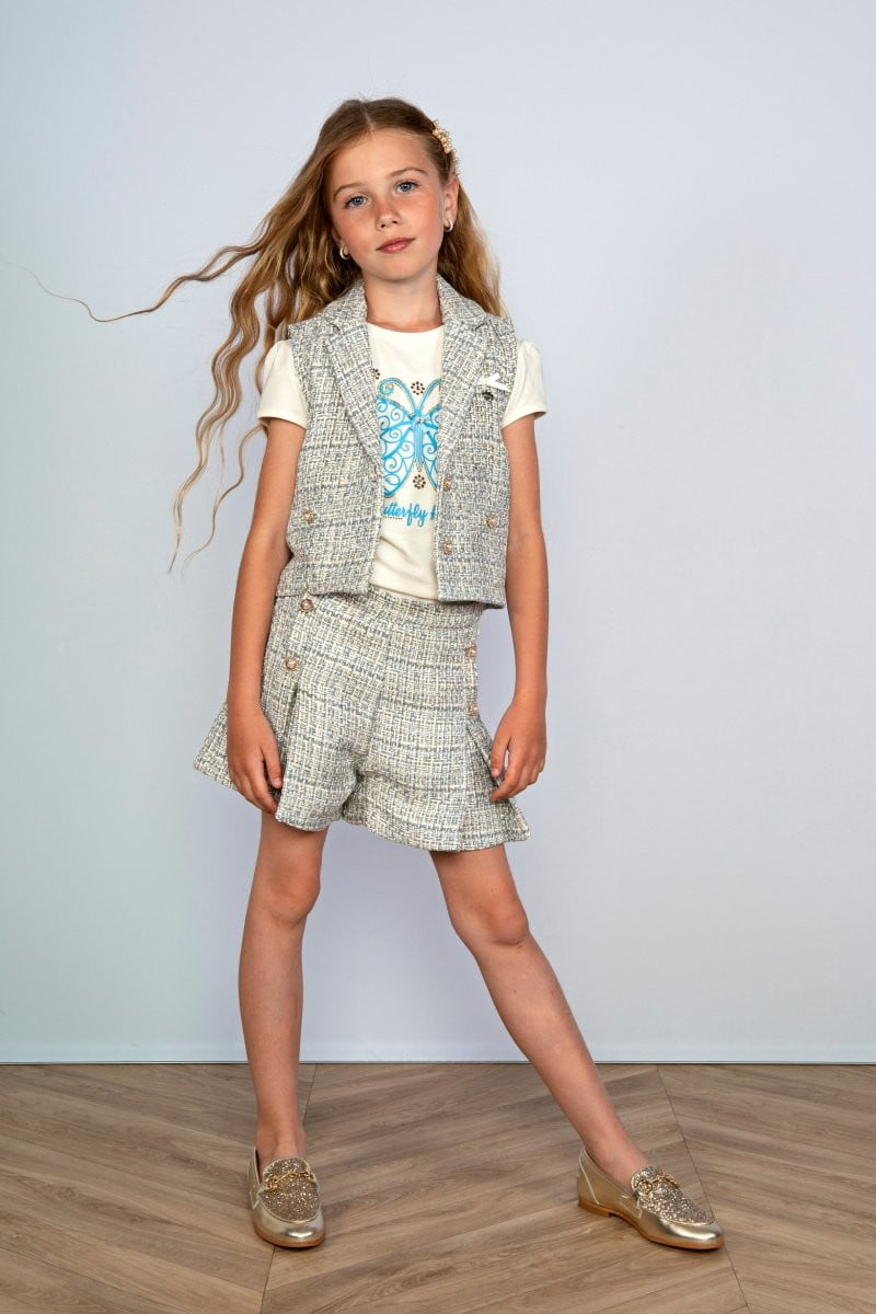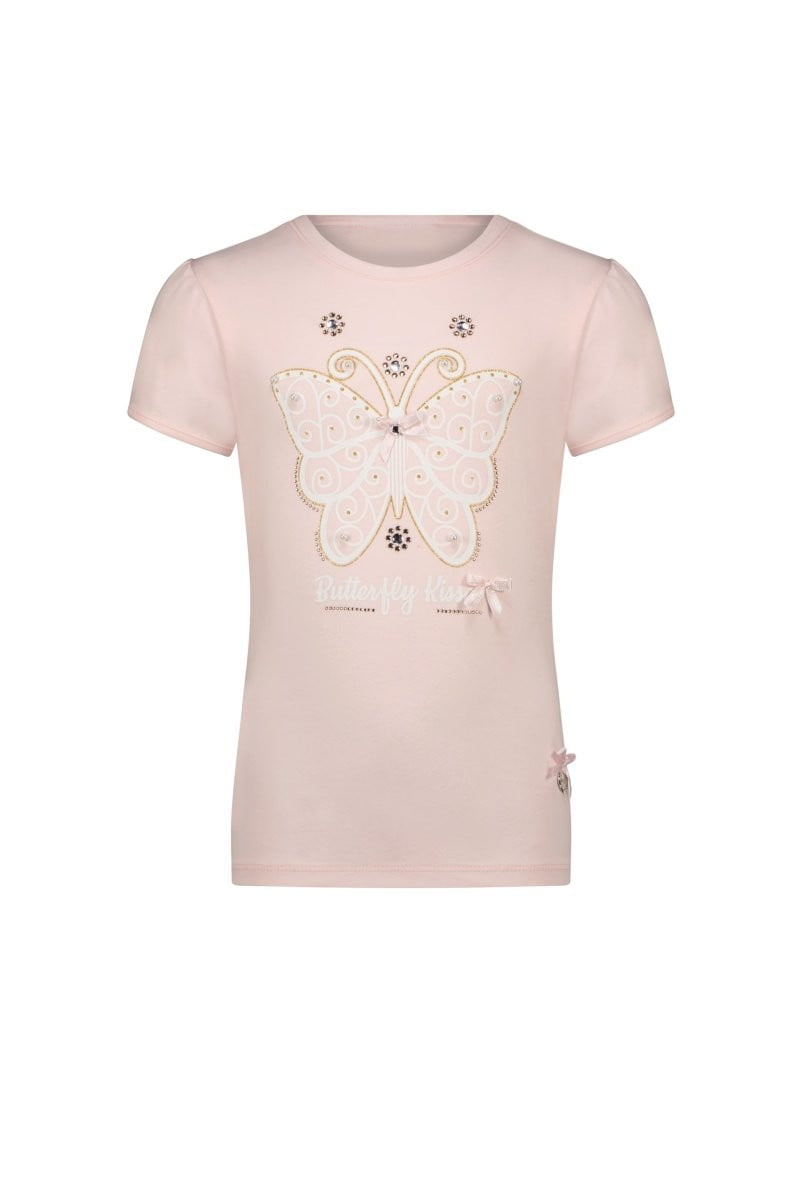 T-shirt met op de borst een prachtige vlinder die versierd is met glimmende accessoires.