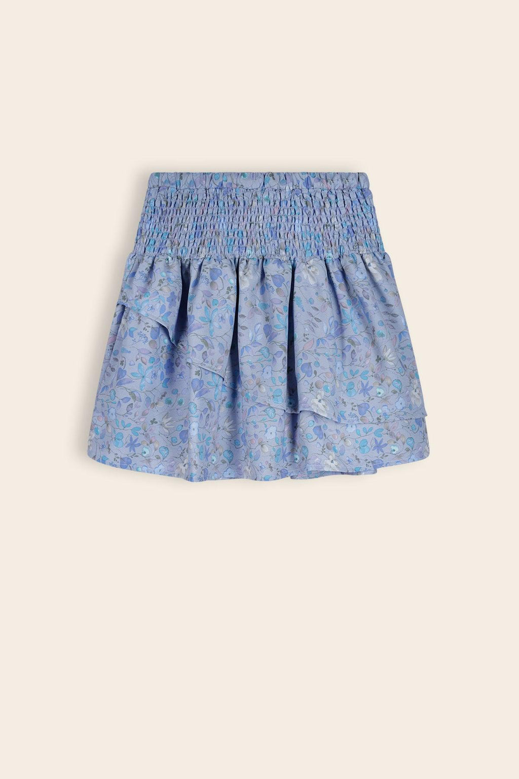 Geprinte rok met hoge smock bij de tailleband en asymmetrische laagjes. De rok is gevoerd met een jersey broekje, ideaal dus voor op het schoolplein of op het klimrek. De rok is gemaakt van gerecycled polyester.