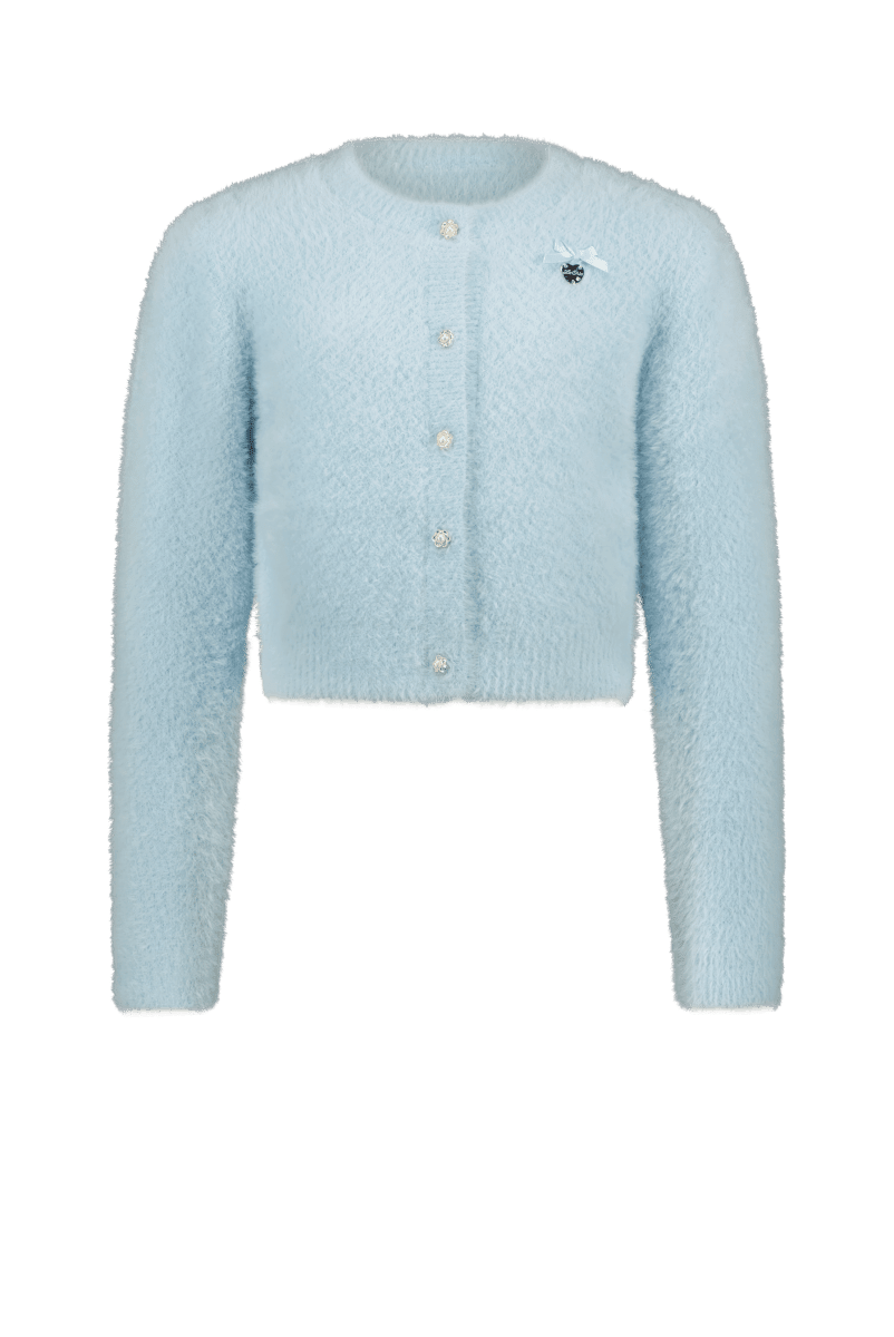 Kort gebreid gebreid vestje in een prachtige blauwe kleur. Het materiaal is heerlijk zacht en de knoopjes zijn ( natuurlijk ) weer echt Le Chic.