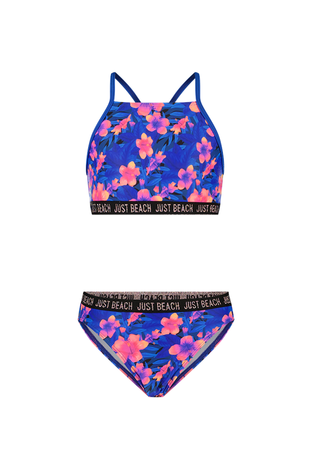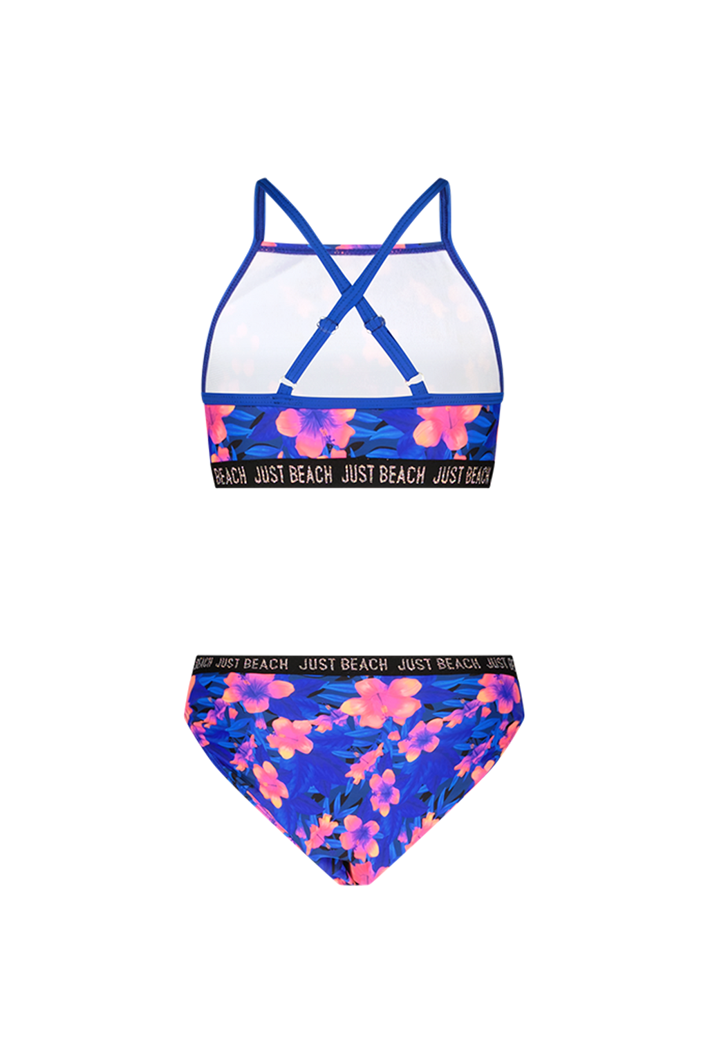 Deze palm springs bikini heeft een gekruiste rug met verstelbare bandjes. Het broekje is een slipje en heeft een leuk elastiek met Just Beach glitter tekst als tailleband. Deze bikini is prachtige kobalt details met felle bloemen. Zo val je lekker op aan het strand. Onze badpakken en bikini's zijn gemaakt van gerecycled polyester. Beter voor de planeet! Volg de reis die je zwemkleding heeft afgelegd door de QR-code op de hangtag te scannen. Daarnaast hebben onze badpakken en bikini's een speciale uv-protection behandeling gehad. Extra veilig voor de zonnige dagen.