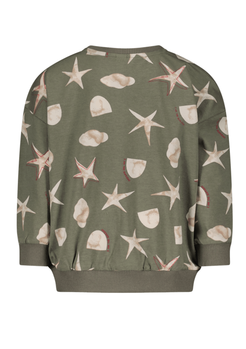 De Sal sweater heeft een té gekke handgeschilderde print! Stoer en beachy! De olijf groene ondergrond keur is een heel makkelijk om te mix en matchen. De trui heeft een oversized look. Combineer Sal met Senna fla rood broek in dezelfde print óf met onze Robin denim short. Laat die zomer maar komen. Gemaakt van duurzaam katoen!