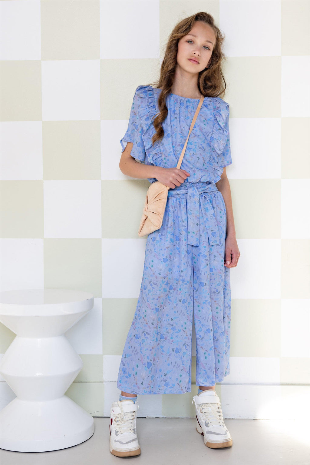 Steel de show met deze jumpsuit met violetten alloverprint. De jumpsuit is gemaakt van gerecycled polyester en gevoerd met een dunne katoenen voering in de body en broek. Let op de mooie rug!