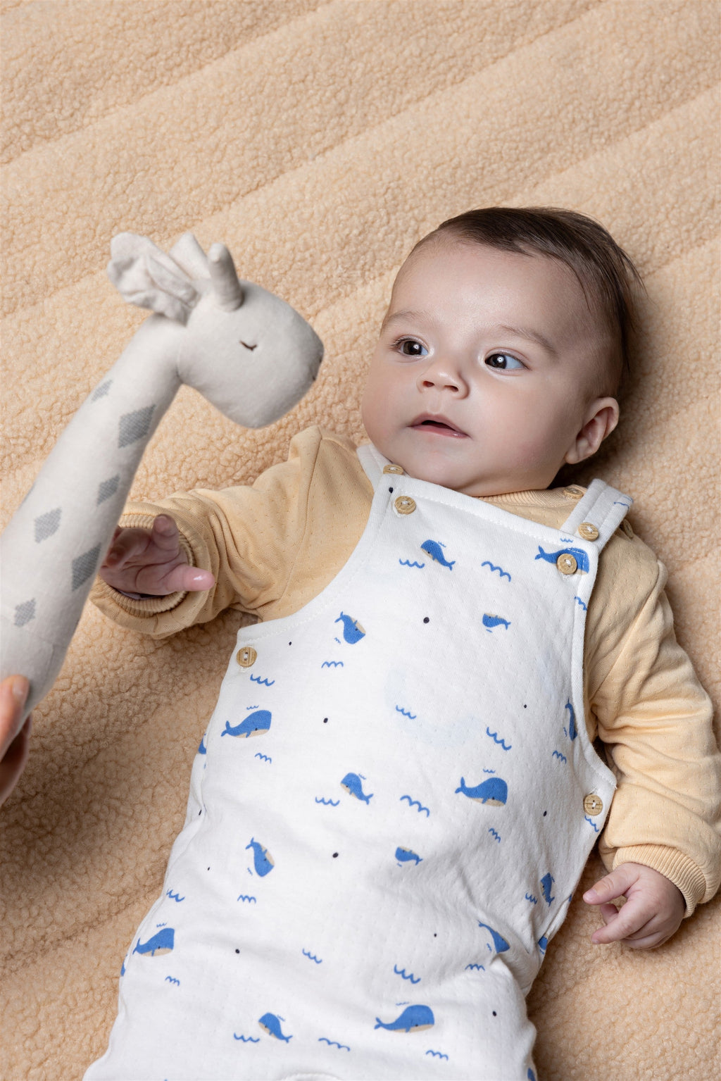 Ontdek onze super zachte jersey salopet met een lieflijke walvisprint in het blauw. Gemaakt van 100% biologisch katoen, is dit knusse kledingstuk een duurzame en verantwoorde keuze voor jouw baby. De dubbele stof maakt het net wat dikker en warmer, perfect voor comfort en bescherming. Drukknopen bij het kruis zorgen voor gemakkelijke verschoning. Deze salopet is een echte essential voor elke newborn die geborgenheid en zachtheid verdient.