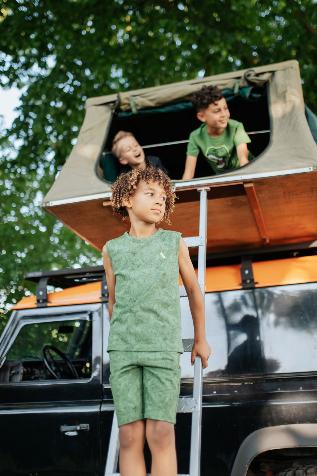 Singlet 'Koen' met een tropische print, stoere kleur en mouwloze armen, maakt dit het perfecte zomeritem. Dit trendy singlet van TYGO & vito voegt een tropische en stoere touch toe aan je zomerse look. Gemaakt van comfortabel biologisch katoen. Draag het met zelfvertrouwen en geniet van de zonnige dagen. Een modieuze en duurzame keuze die bijdraagt aan FOR A BETTER NEXTERDAY. Wist je trouwens dat je door het scannen van de QR-code de reis kunt zien die dit kledingstuk al heeft afgelegd? Verkrijgbaar in de maten 92-152.