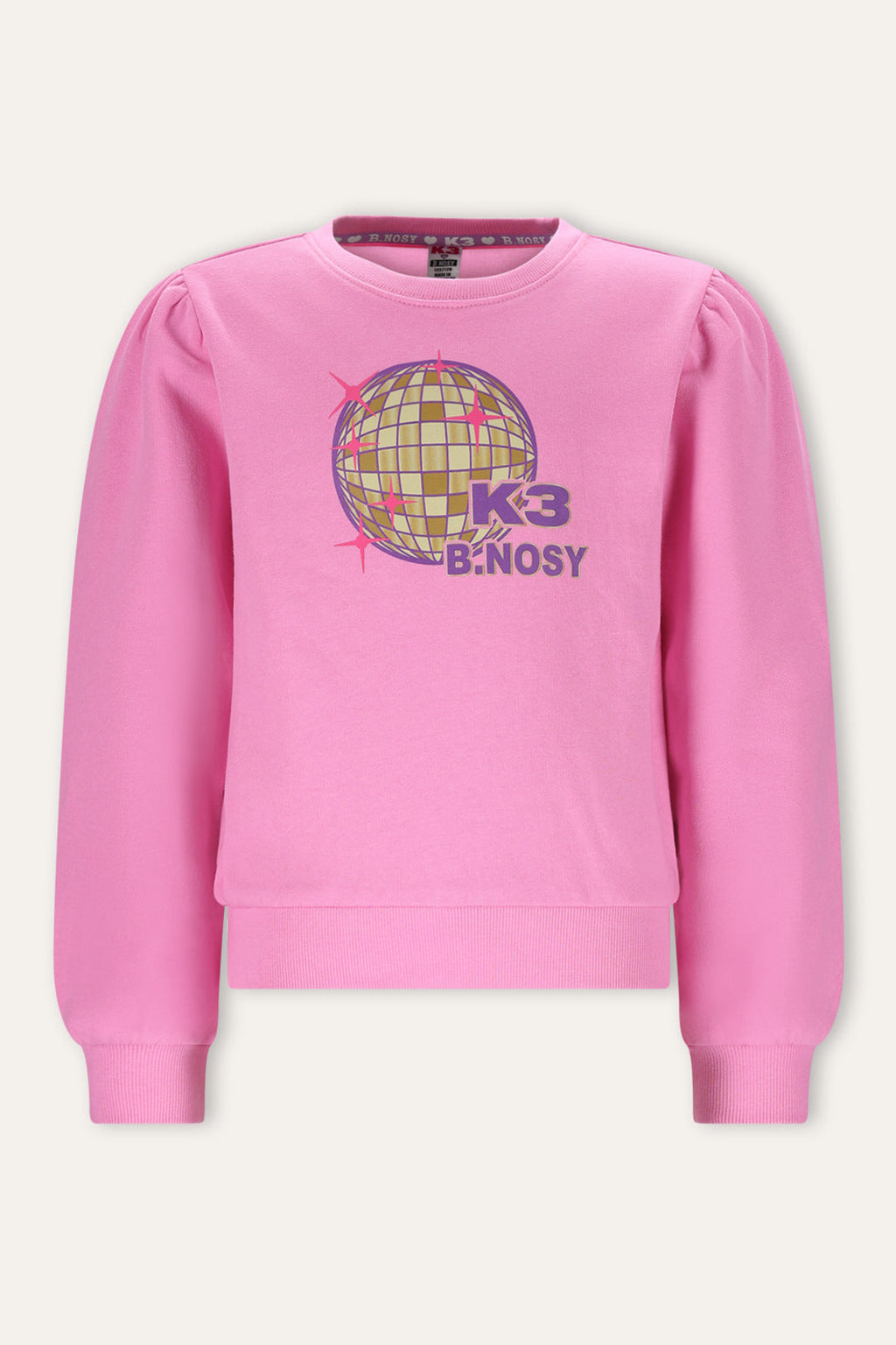 Hoe leuk is deze B.Nosy x K3 sweater Sophie! Deze comfortabele sweater is gemaakt van biologisch katoen en heeft een gave K3-print van een discobal. Perfect te combineren met de Phoebe broek of het River rokje. Deze veelzijdige sweater is ideaal voor elke gelegenheid. Maak de outfit compleet en straal als een echte K3-fan!