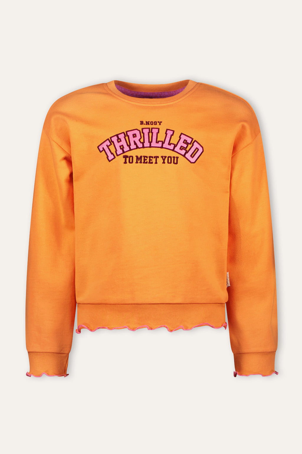 B.Nosy Sue Sweater in stralend oranje biedt een speelse en comfortabele stijl voor meisjes. Gemaakt van biologisch katoen, zorgt deze sweater voor een heerlijk draagcomfort. De sweater is leuk combineren met het Pam shortje voor een trendy outfit met een leather look. tekst