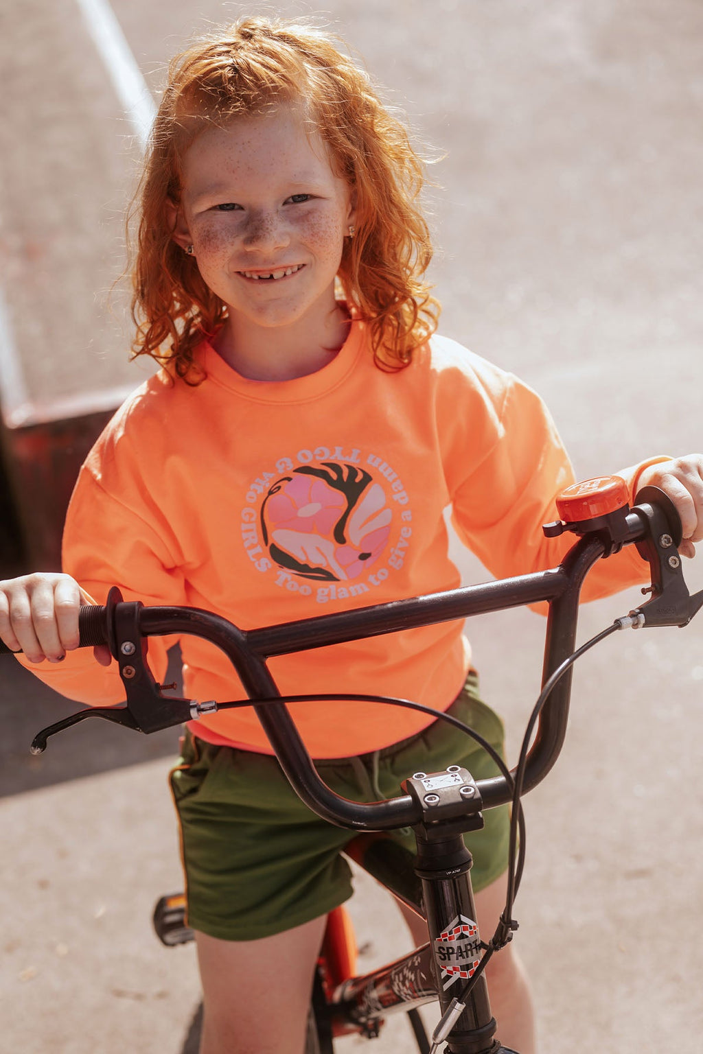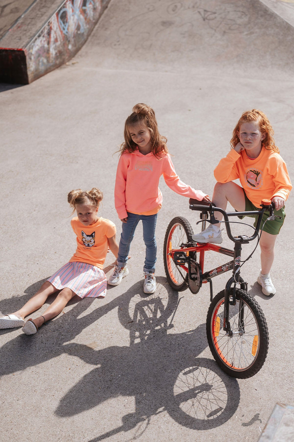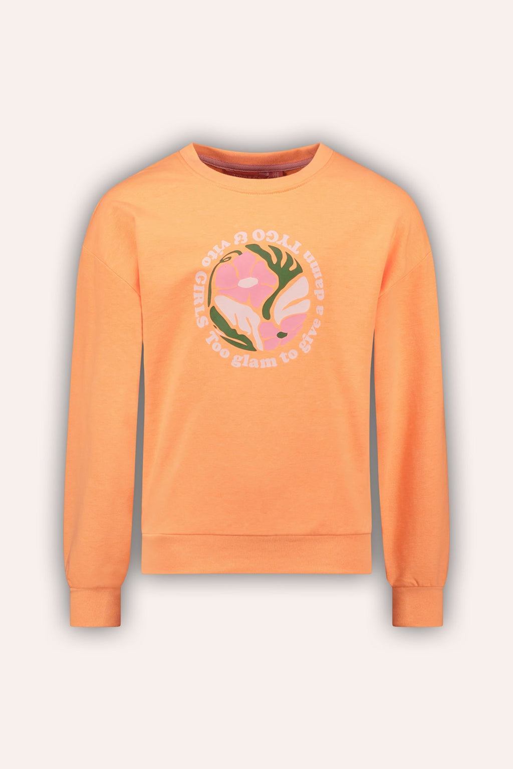 To glam to give a dam! De neon koraalkleurige sweater 'Noë' is een vrolijke en opvallende trui met een grote print op de borst. Deze trendy zomertrui is speciaal ontworpen voor onze TYGO girls. Verkrijgbaar in de maten 92-152, biedt deze sweater comfort en stijl voor de warmere dagen. Een echte eyecatcher voor een modieuze look!"
