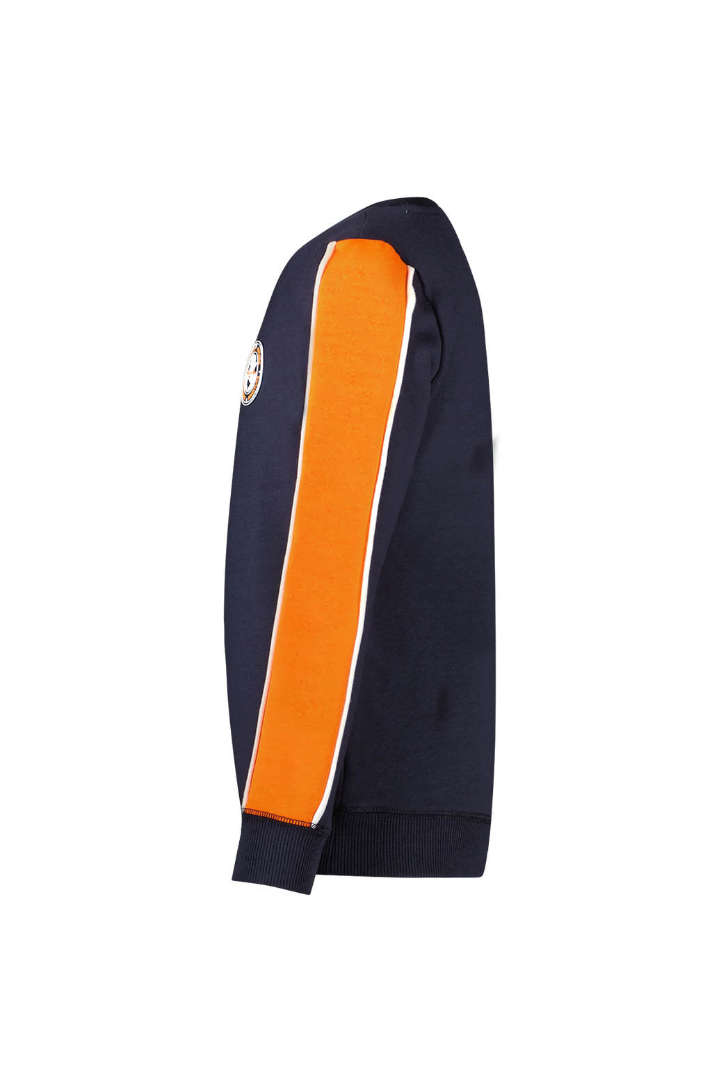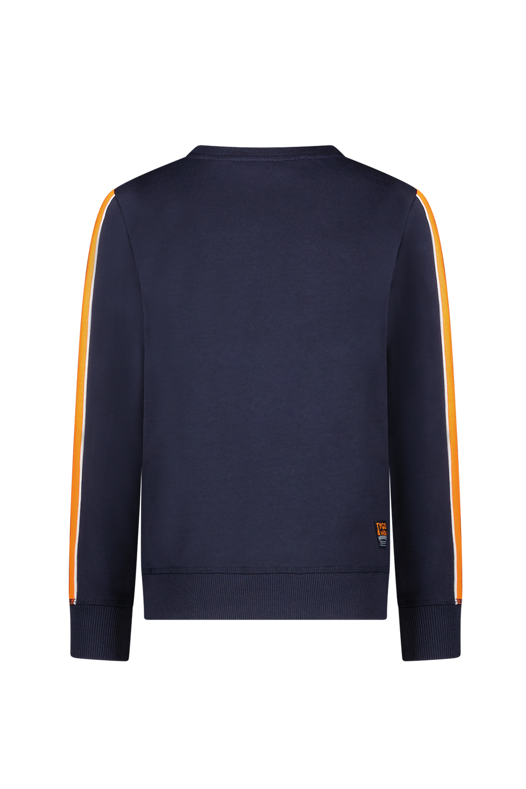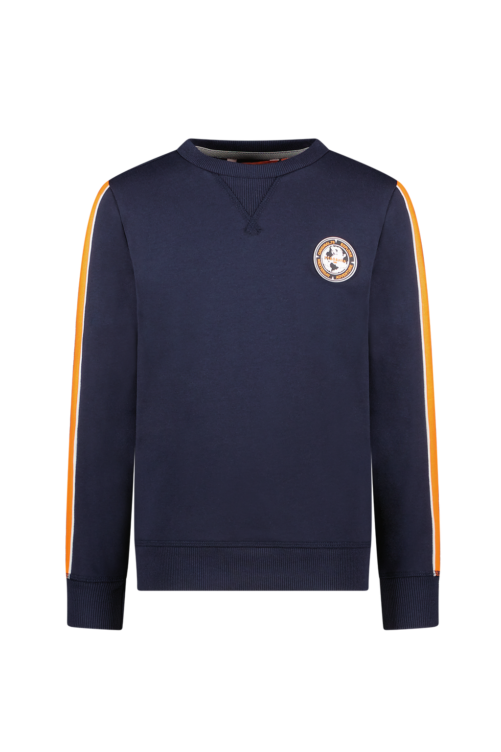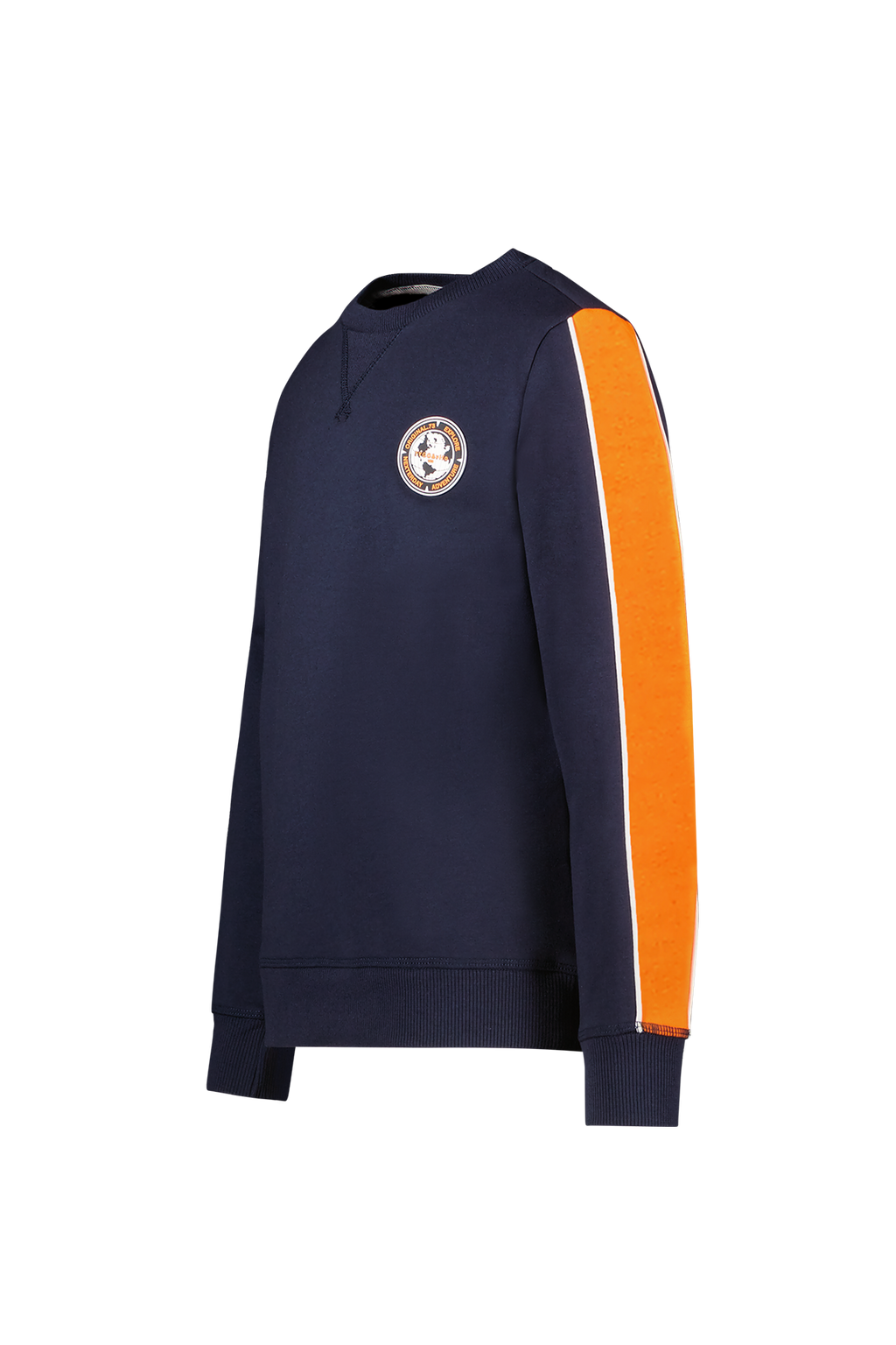 Sportieve donkerblauwe sweater met contrast oranje streep in de mouw. De trui heeft een mooie badge op de voorkant. De trui voelt heerlijk zacht en comfortabel. Wil je graag een heel joggingpak? Dat kan! Combineer sweater Sander op joggingbroek Pete. Verkrijgbaar in de maten 92-152. SEE YOU NEXTERDAY.