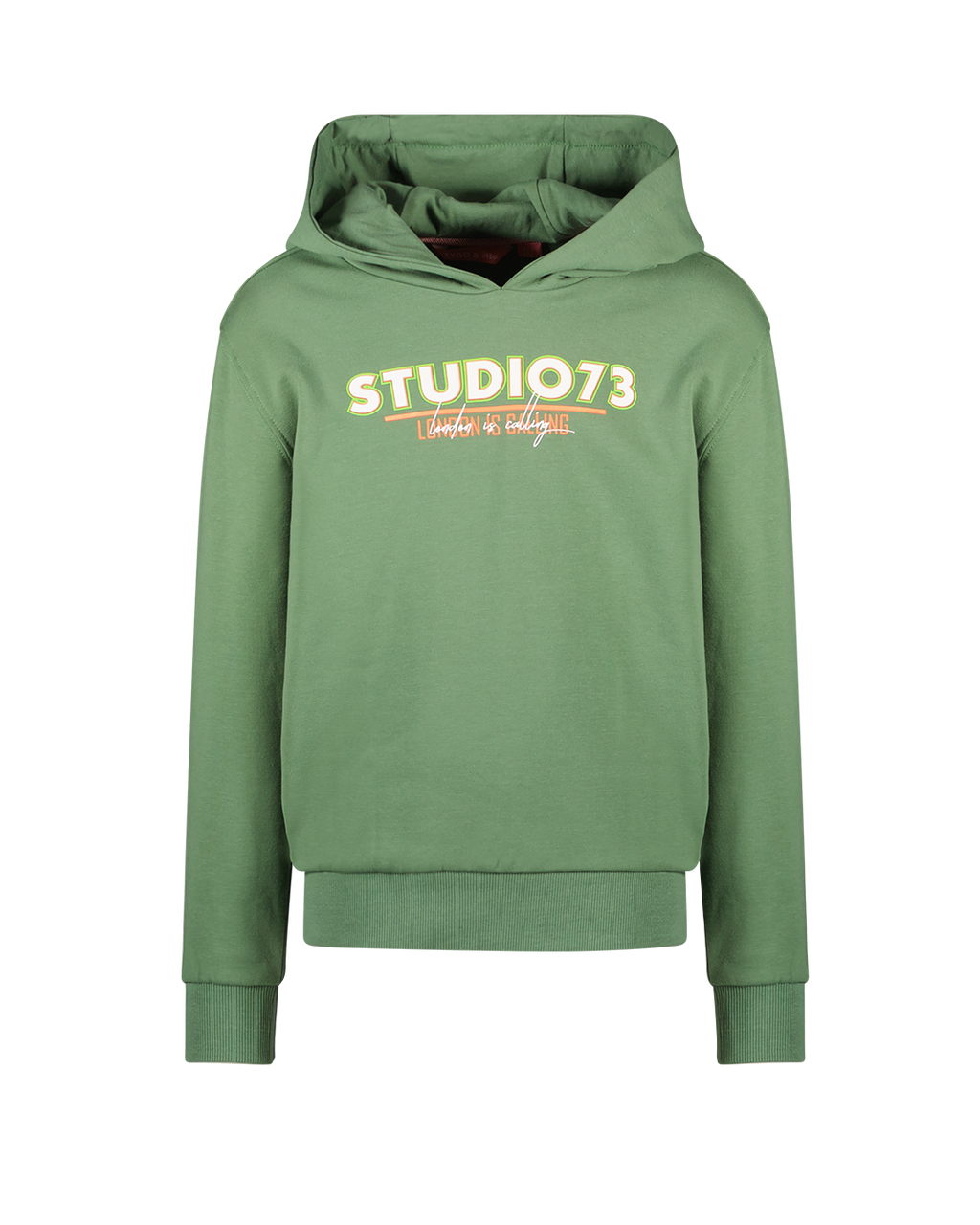 Sportieve olijfgroene hoodie in elastisch katoen met een stoere print op de borst. Combinatietip: Draag deze capuchon sweater op jogpant Puck. Als je voor deze sweater kiest, steun je het "Cotton made in Africa" initiatief. TYGO & vito FOR A BETTER NEXTERDAY