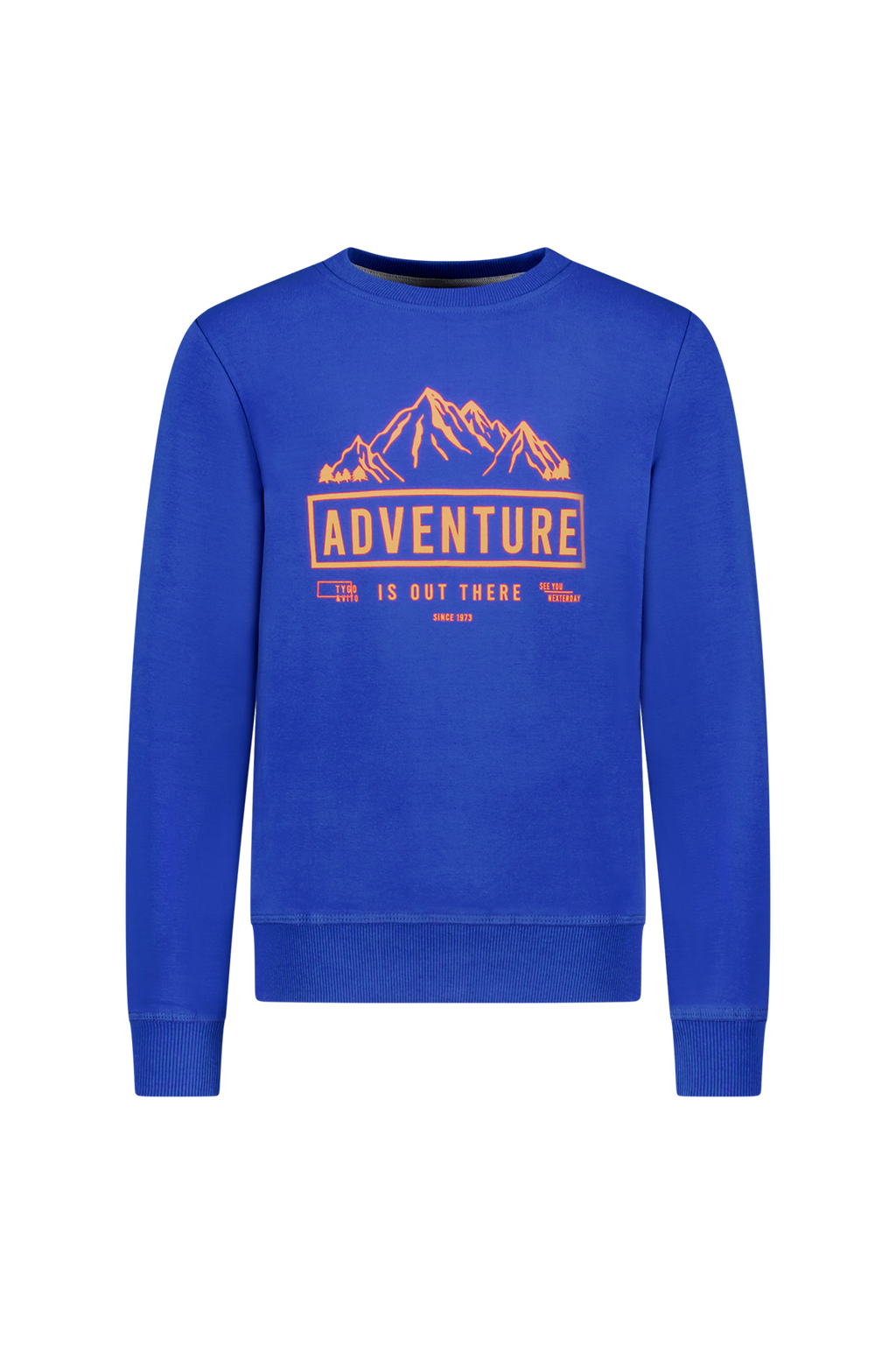 Ga je mee op avontuur in deze stoere kobalt blauwe sweater in elastisch katoen met ronde hals? De trui heeft een leuke oranje adventure print op de voorkant en is makkelijk te combineren met de TYGO & vito jeans en andere fancy broeken uit deze levering. Als je voor deze sweater kiest, steun je het "Cotton made in Africa" initiatief. TYGO & vito FOR A BETTER NEXTERDAY. Verkrijgbaar in de maten 92-152.
