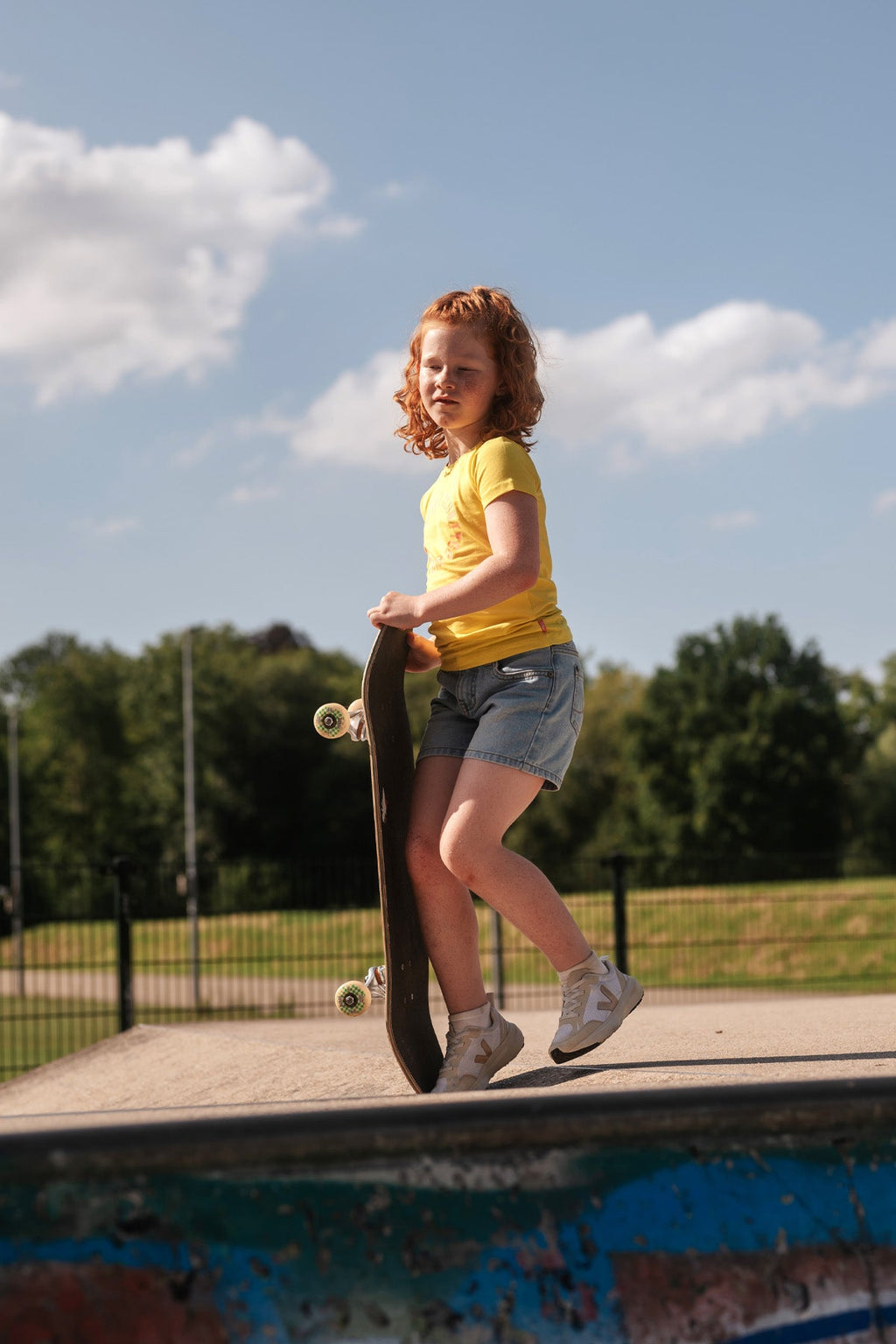 Zomers neon geel T-shirt 'Jayla' met comfortabel biologisch katoen, met een vrolijke print op de borst, speciaal voor de TYGO Girls! Draag het met stijl en een vleugje vrolijkheid. Deze opvallende keuze van TYGO & vito brengt niet alleen kleur in je outfit, maar draagt ook bij aan FOR A BETTER NEXTERDAY. Wist je trouwens dat je door het scannen van de QR code de reis kunt zien die dit kledingstuk al heeft afgelegd? Beschikbaar in de maten 92-152.