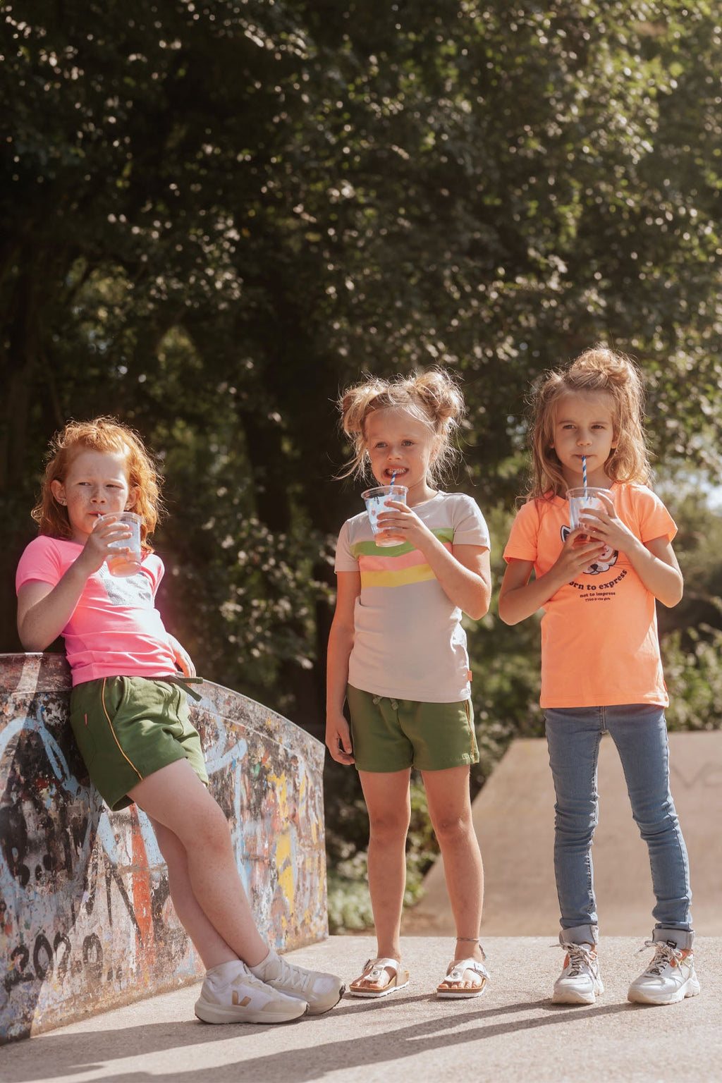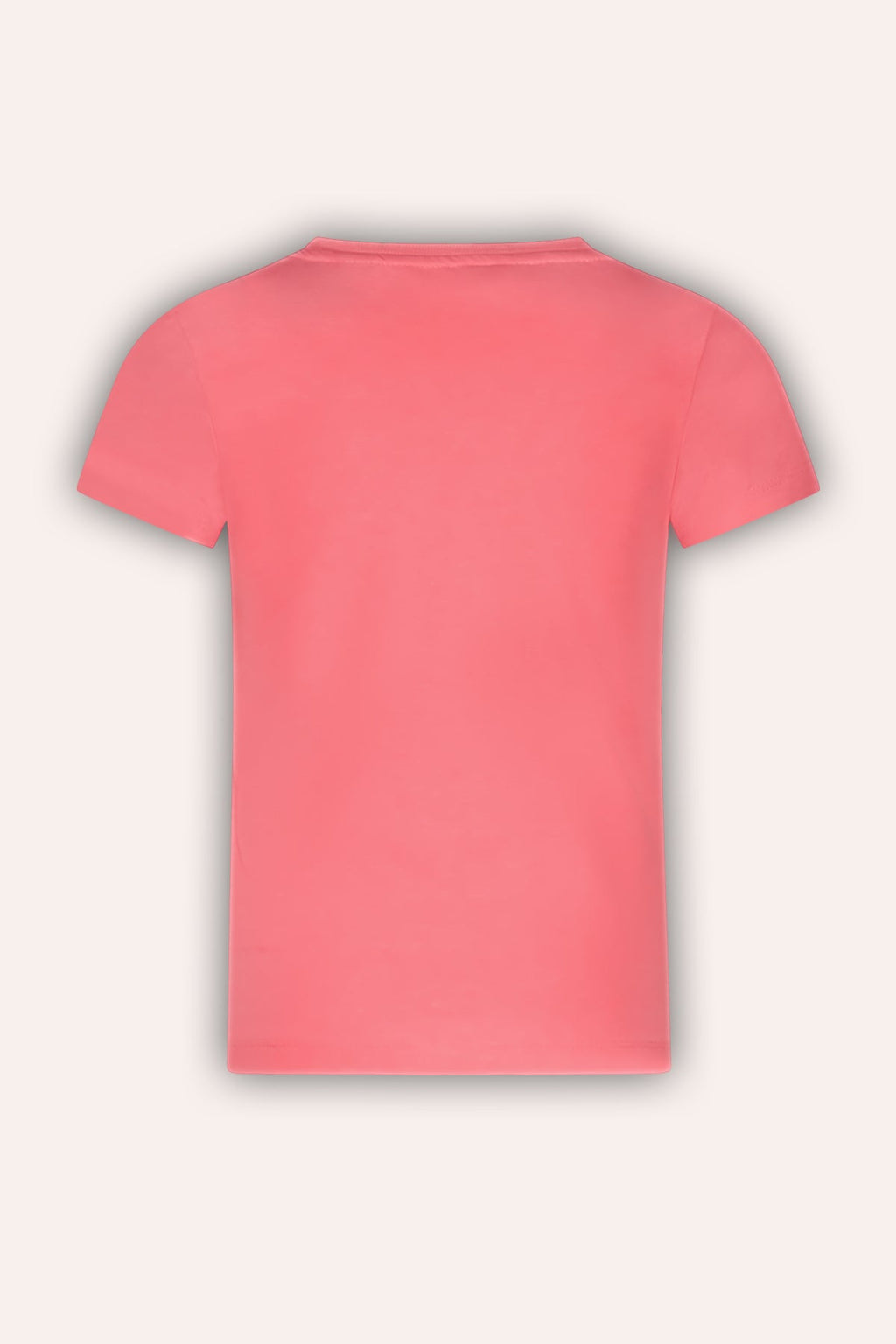 Stijlvol neon roze T-shirt 'Jill' van biologisch katoen met speelse zebraprint op de borst. Trendy en duurzaam, draag het moeiteloos met jeans of shorts voor een frisse vibe. Een kleurrijke en milieubewuste keuze van TYGO & vito, bijdragend aan FOR A BETTER NEXTERDAY. Wist je trouwens dat je door het scannen van de QR code de reis kunt zien die dit kledingstuk al heeft afgelegd? Verkrijgbaar in de maten 92-152.
