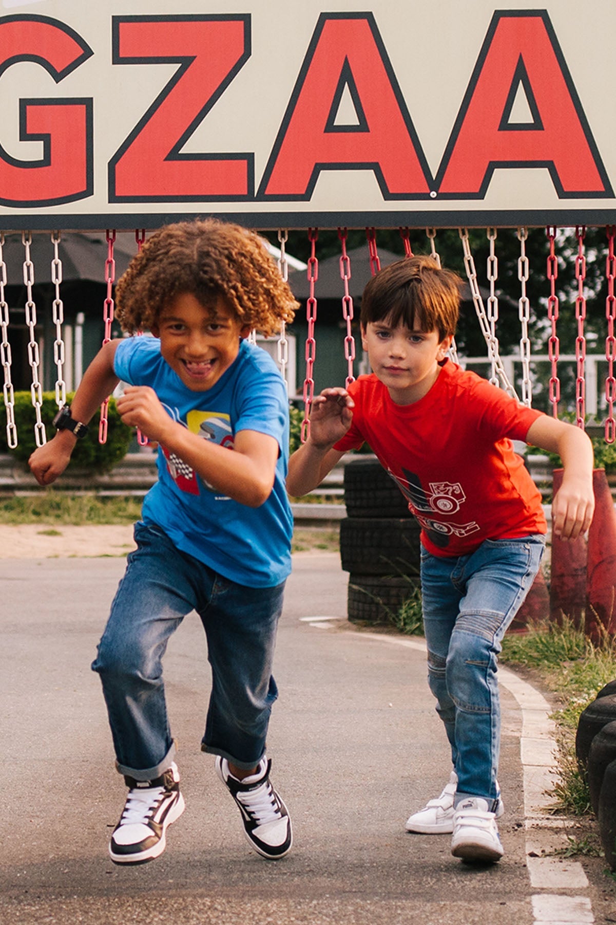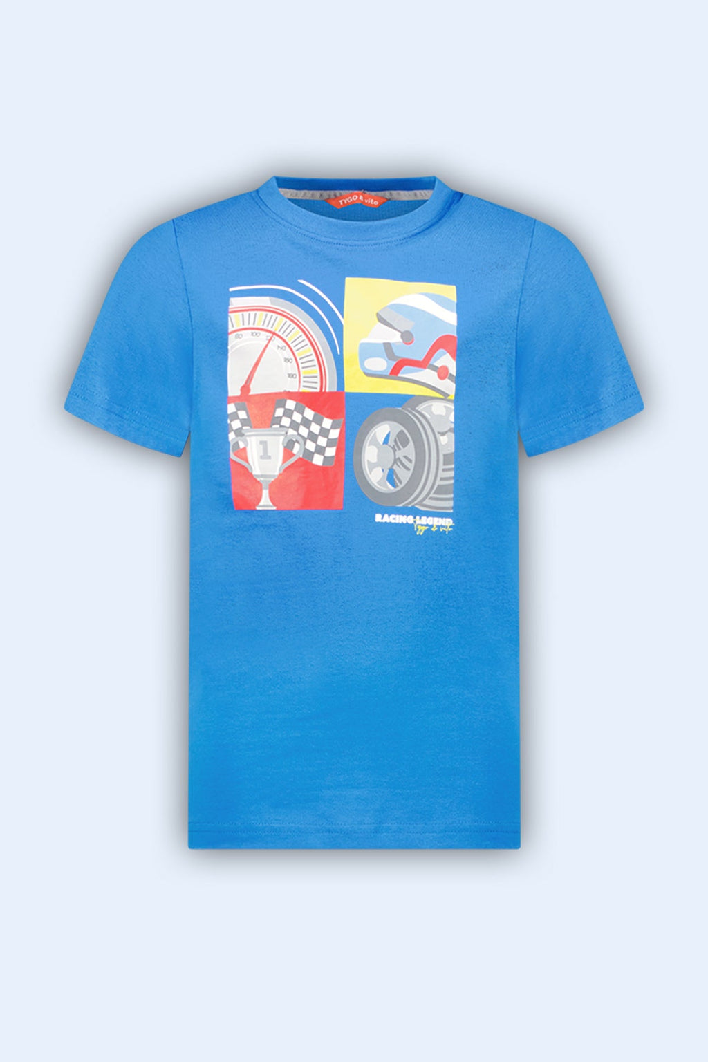 T-shirt 'Joël', gemaakt van zacht biologisch katoen, komt in een blauwe kleur met een opvallende, drukke raceprint aan de voorkant. Dit trendy en duurzame T-shirt is perfect voor liefhebbers van opvallende ontwerpen, en het biedt een casual en stijlvolle uitstraling. FOR A BETTER NEXTERDAY. Wist je trouwens dat je door het scannen van de QR-code de reis kunt zien die dit kledingstuk al heeft afgelegd? Verkrijgbaar in de maten 92-152.