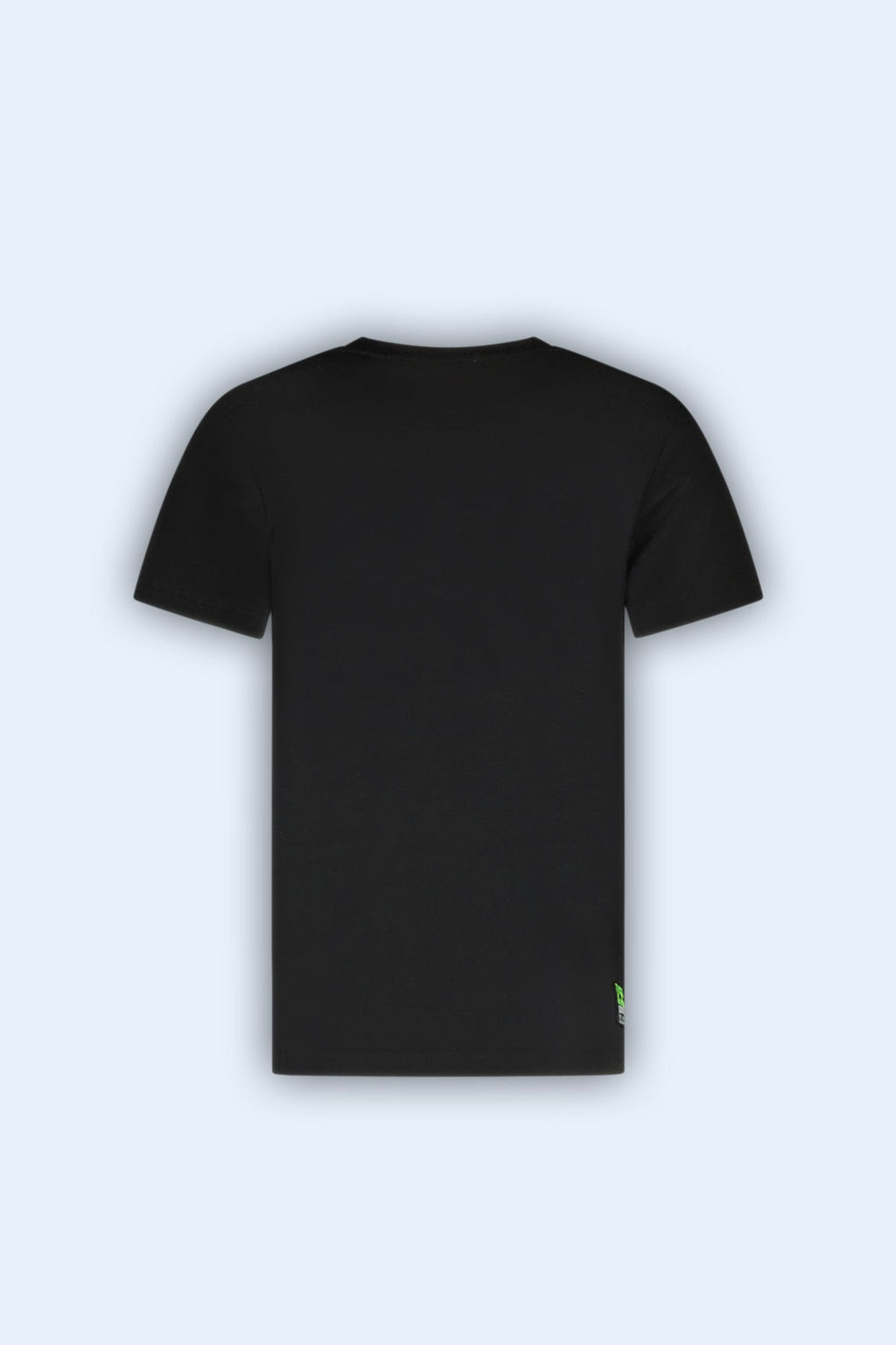 Stoer zwart T-shirt 'John' met een opvallende grote print op de voorkant, vervaardigd van comfortabel biologisch katoen. Dit trendy shirt van TYGO & vito voegt een gedurfde en krachtige touch toe aan je outfit. Draag het met stijl en laat de print voor zichzelf spreken. Een opvallende en milieubewuste keuze die bijdraagt aan FOR A BETTER NEXTERDAY. Wist je trouwens dat je door het scannen van de QR-code de reis kunt zien die dit kledingstuk al heeft afgelegd? Verkrijgbaar in de maten 92-152.
