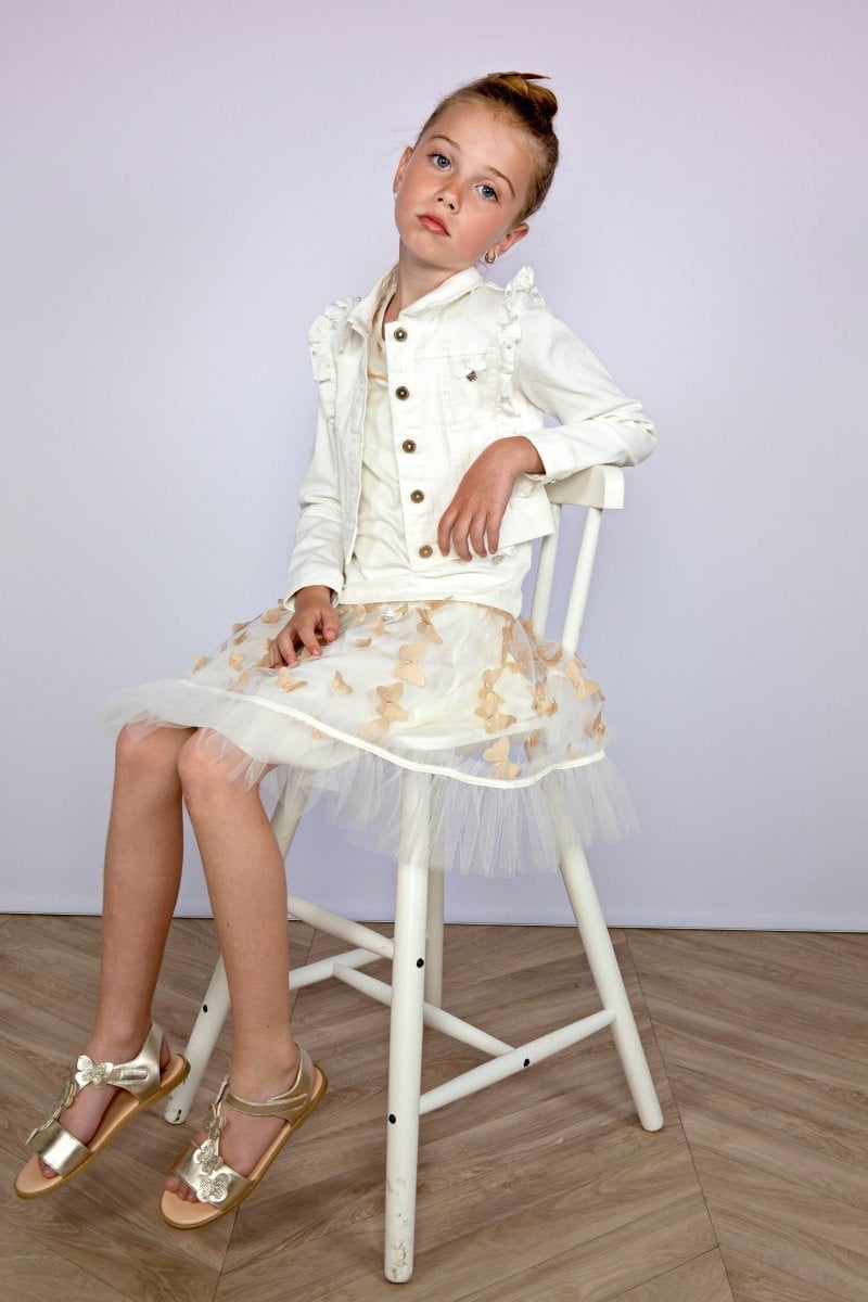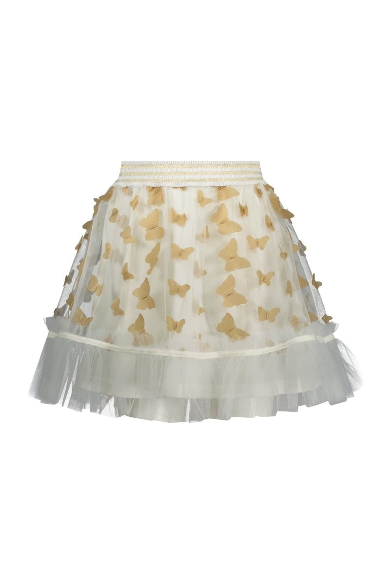 De luxe stof met vlinder applicaties maakt dit rokje extra bijzonder.