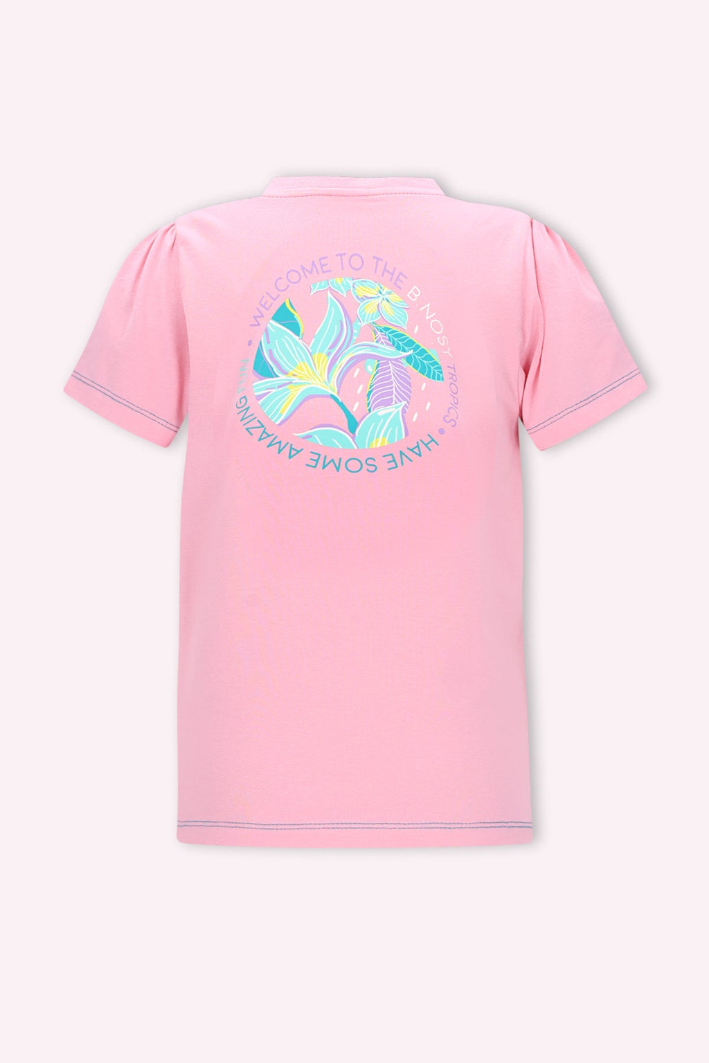 Dit vrolijke roze T-shirt van B.Nosy is een echte must-have voor je meid! Het shirt heeft een toffe artwork op de borst en leuke contrast stiksels, wat het helemaal afmaakt. Het is een fashionable item dat perfect te combineren is met de rok River voor een complete, speelse outfit.
