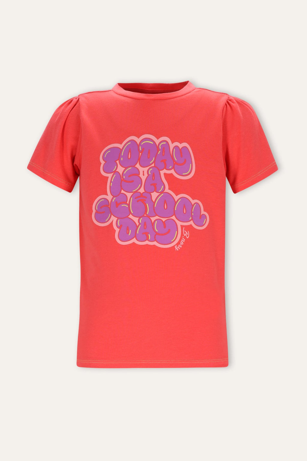 Say it loud & proud! Dit koraalroze T-shirt van B.Nosy knalt dankzij de grote, speelse statement print op de voorkant. De schattige pofmouwtjes geven ’m een girly twist en de contrasterende stiksels maken de look extra cool. Perfect voor schooldagen, speelmiddagen en alles ertussenin!
