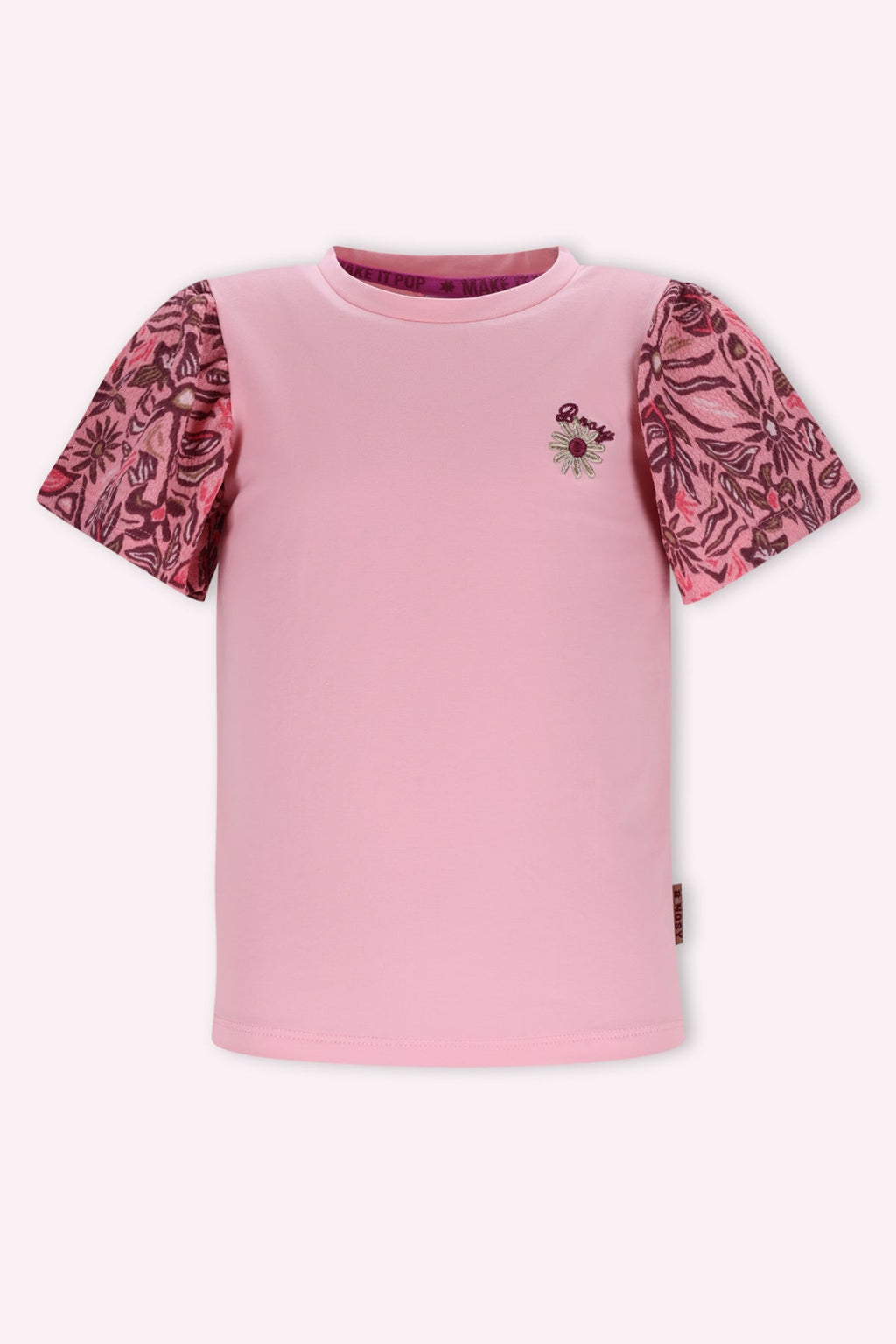 Deze leuke top van B.Nosy is een must-have voor meiden! De losvallende mouwen met bloemenprint geven een speelse touch. De print op de borst maakt deze top een echte eyecatcher. Combineer deze trendy top met de broek Penny of rok Ruth voor een complete outfit.