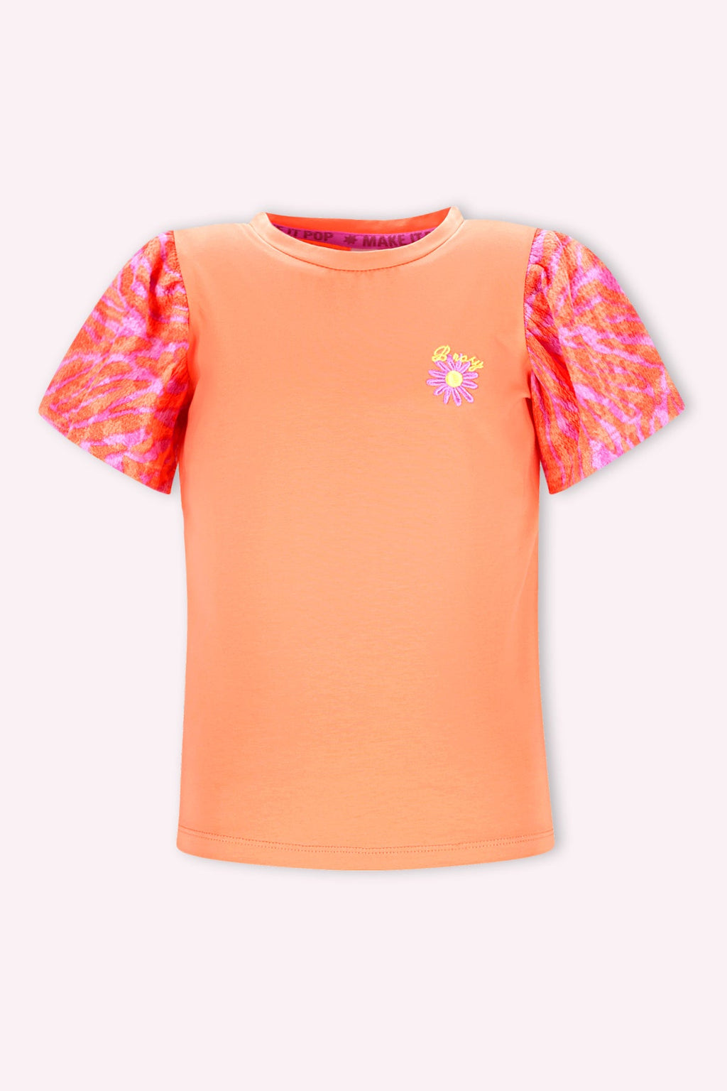 Zet je schrap voor deze kleurrijke Thessa top van B.Nosy in een vrolijk oranje! De top is een echte all-time favorite dankzij de los vallende zebra print mouwen en de leuke print op de borst. Gemaakt van een comfortabele stof die fijn aanvoelt, is dit een onmisbaar item voor elke meid. Combineer hem met een stoere rok voor een toffe outfit.