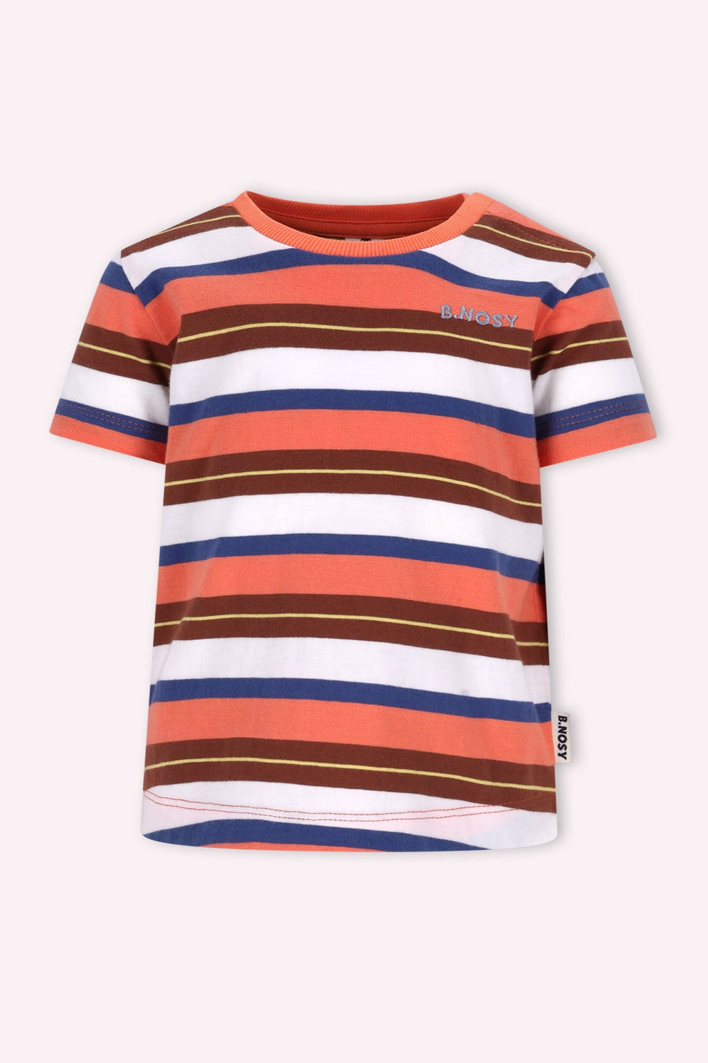 Deze kleurrijke oranje T-shirt van B.Nosy is een absolute must-have voor jongens. Met zijn speelse streepjes en comfortabele pasvorm, gemaakt van 100% biologisch katoen, is dit shirt perfect voor dagelijks plezier. Een fantastische toevoeging aan elke garderobe.