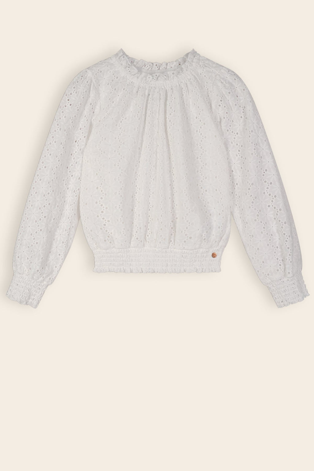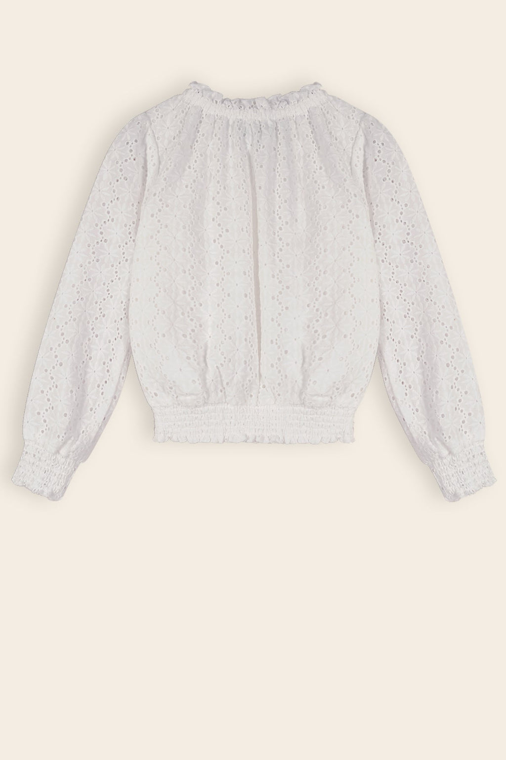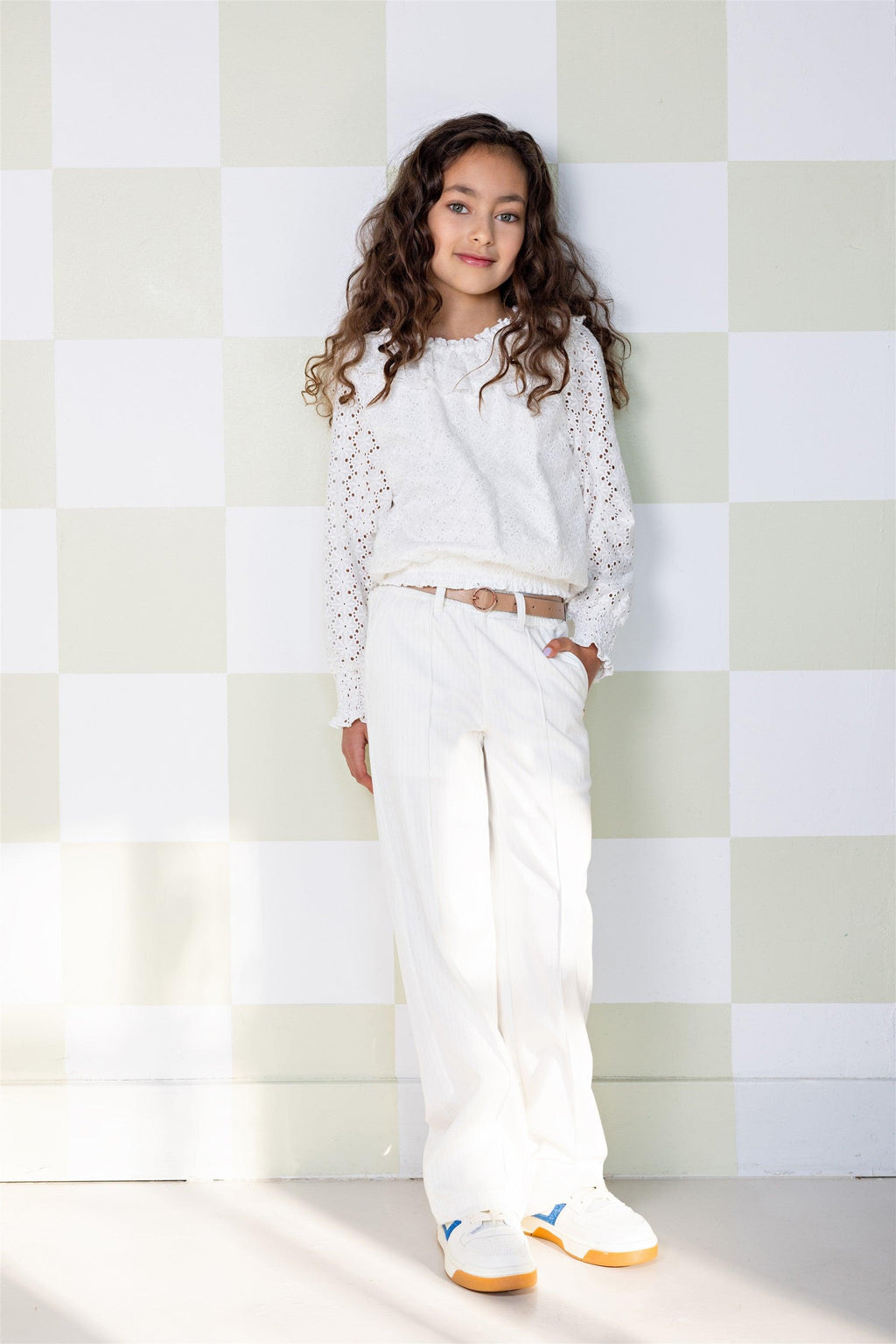 Het perfecte witte blousje. Stoer op een denimbroek of op de witte lurex krijtstreep broek Sayla