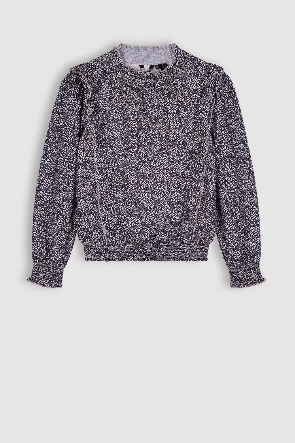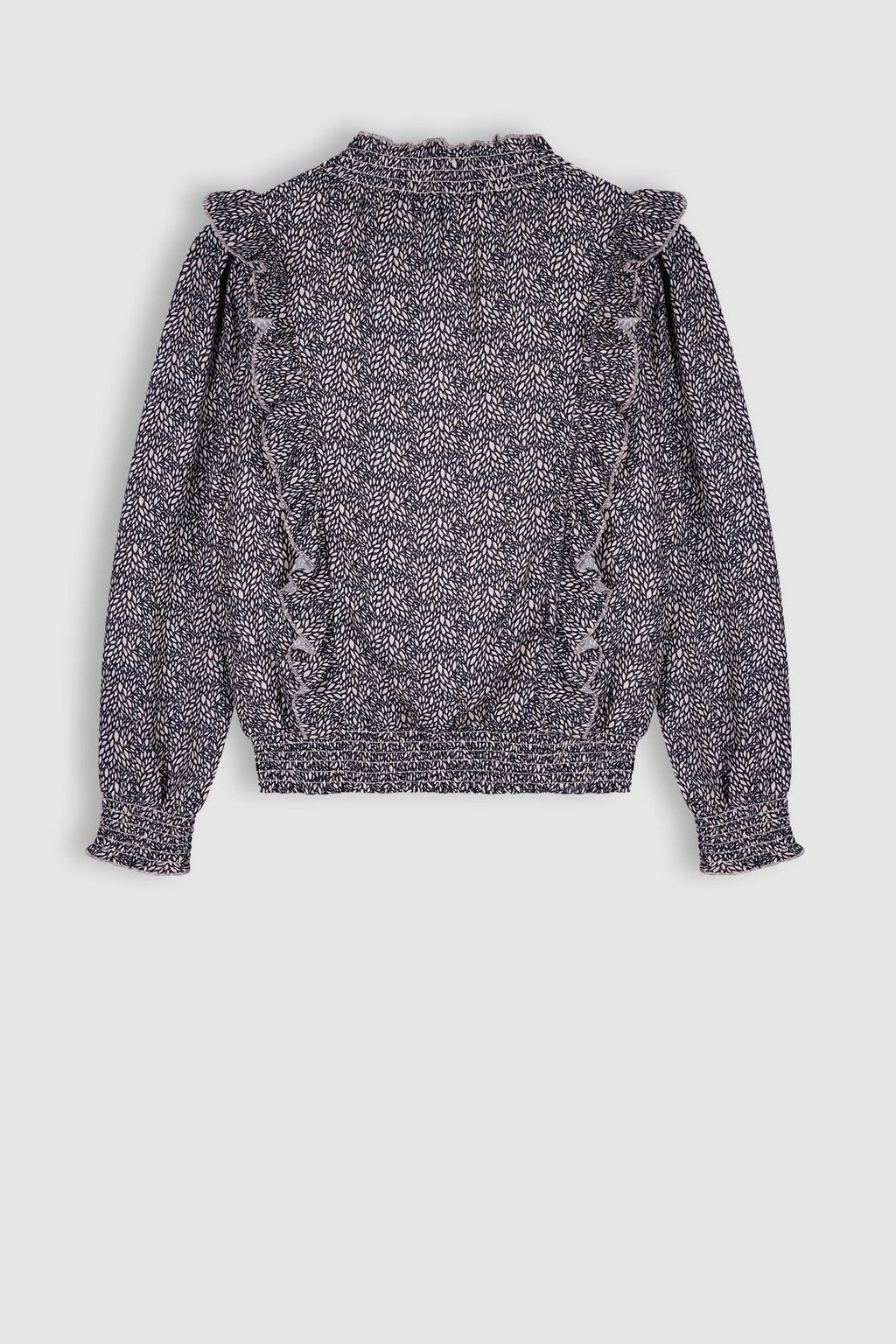 Geprint blousje met smockdetails bij de hals, mouwen en zoom. De Blouses is gemaakt van gerecycled polyester en gevoerd met een dunne katoenen voering.