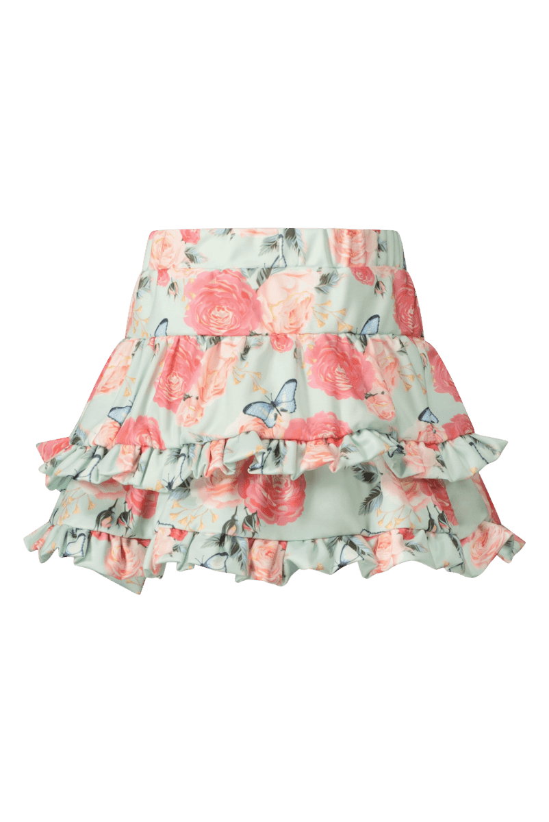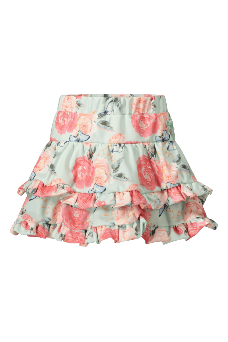 Vrolijk gebloemd kort rokje met elastieken taille. Draagt heerlijk en staat super vrolijk. Een perfectie combinatie dus.