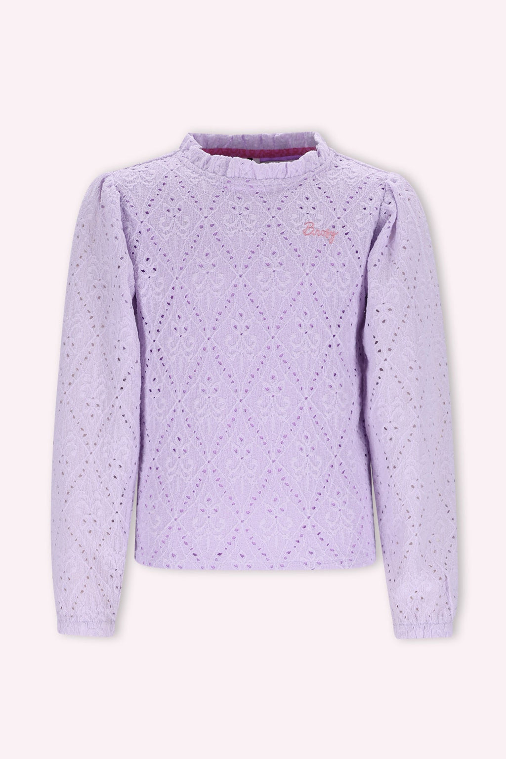 Dit leuke B.Nosy T-shirt in lavendel is een must-have voor elke meid! Het shirt is gemaakt van een bijzondere stretch broderie stof en heeft een subtiel borduurtje op de borst. Een vrolijk en comfortabel item dat elke outfit een fashionable touch geeft en goed te combineren is met andere items.