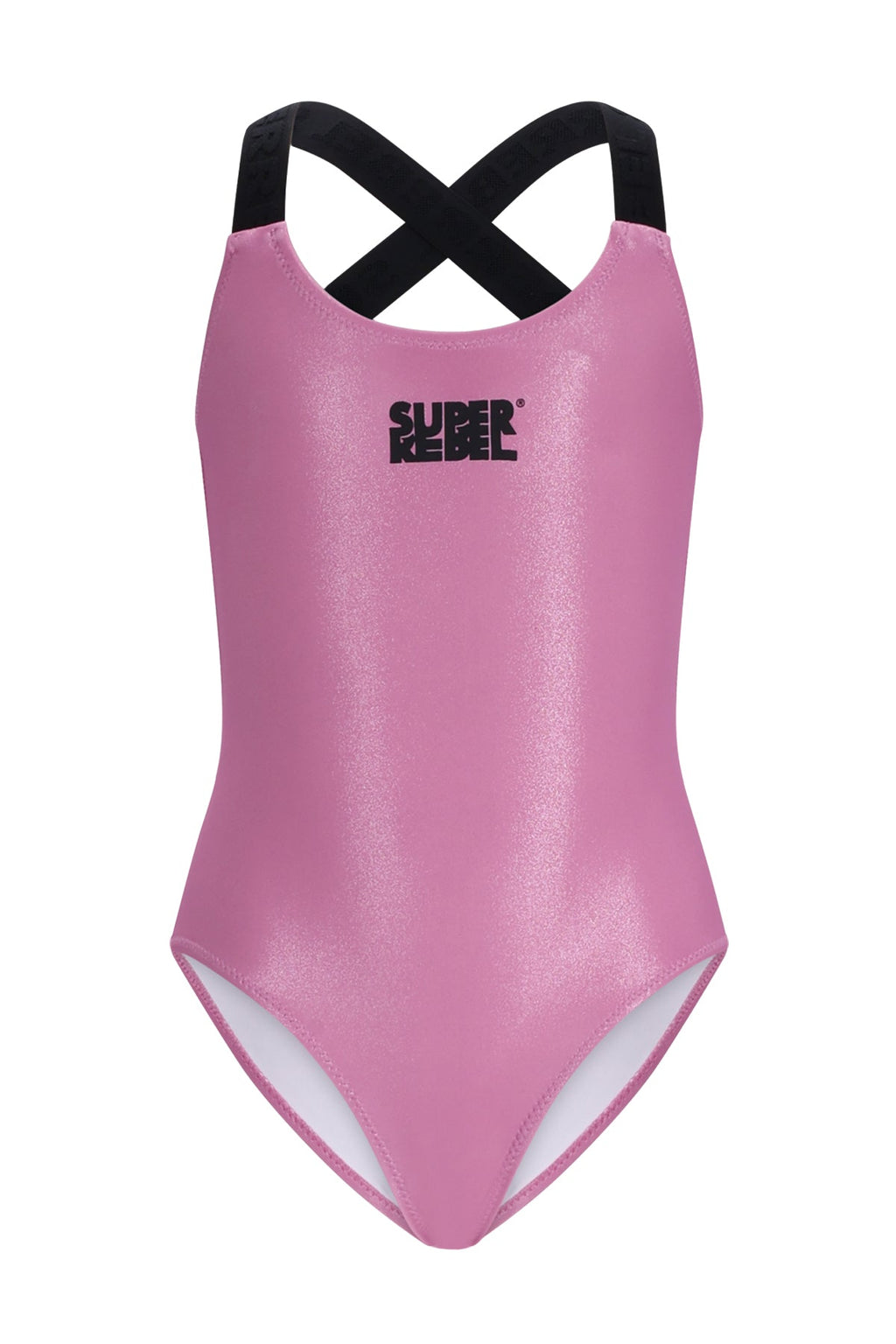 Stoere girls opgelet! De Venice Bathing Suit Metallic Pink van SuperRebel is de perfecte outfit voor actief plezier. Dit badpak is volledig gevoerd, heeft crossback branded elastiek en is gemaakt van 85% gerecycled polyester. Een gedurfde keuze voor een zomerse look die staat voor lef en comfort. Ideaal voor stranddagen en zwembadpret.