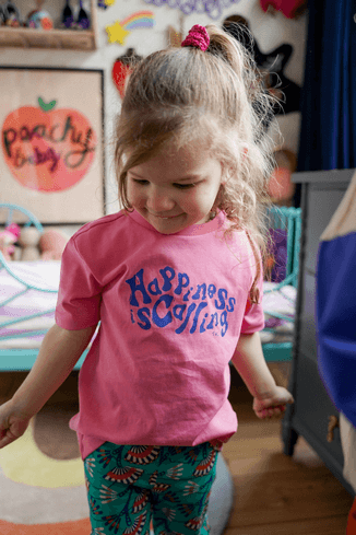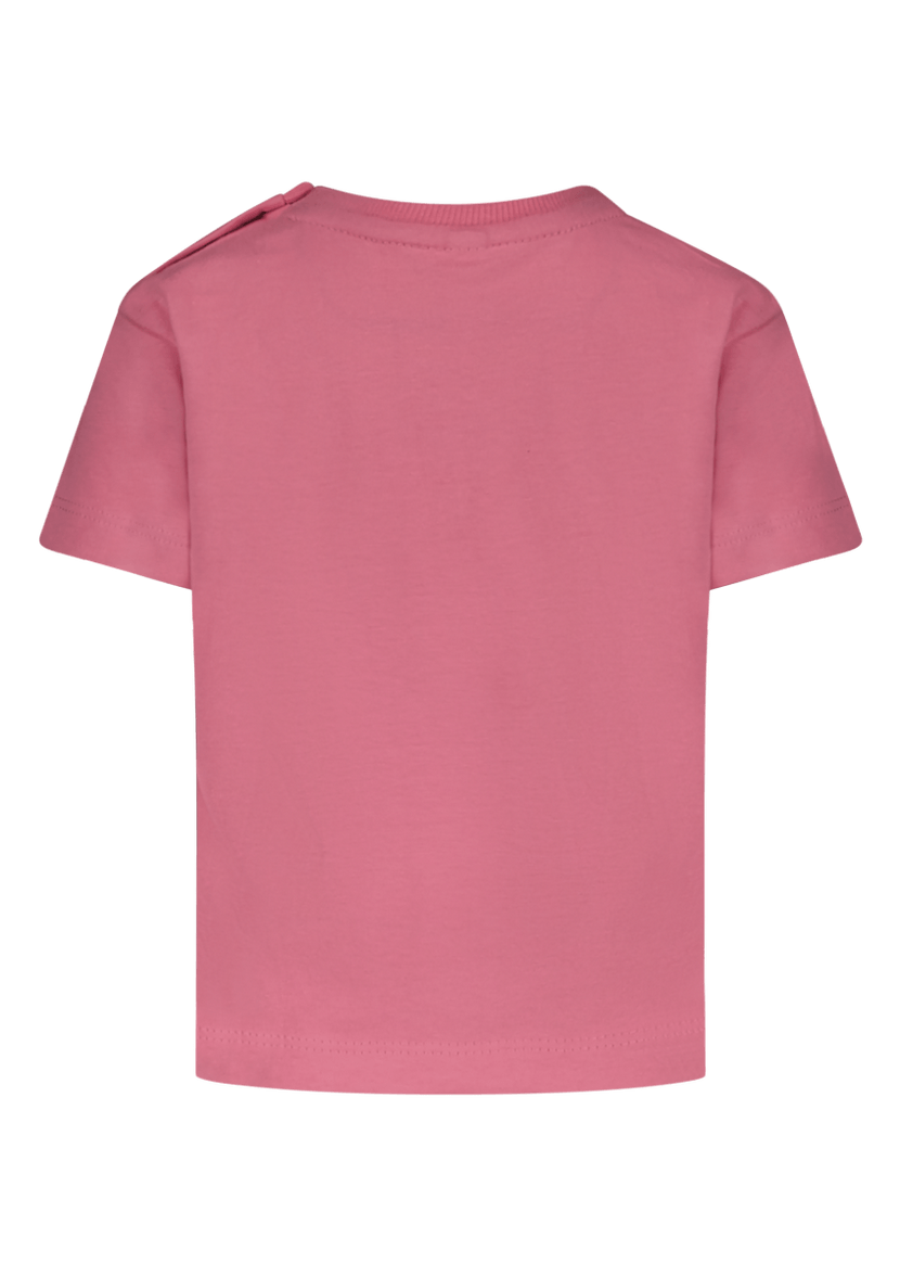 Happiness is calling! Dit roze t-shirt genaamd Vie is een echte musthave. Het shirt is lekker comfy en door de grote print op de borst in cobalt blauw, toch lekker stoer! Afgewerkt met een mooi rib boord langs de hals. Gemaakt van duurzamer katoen!