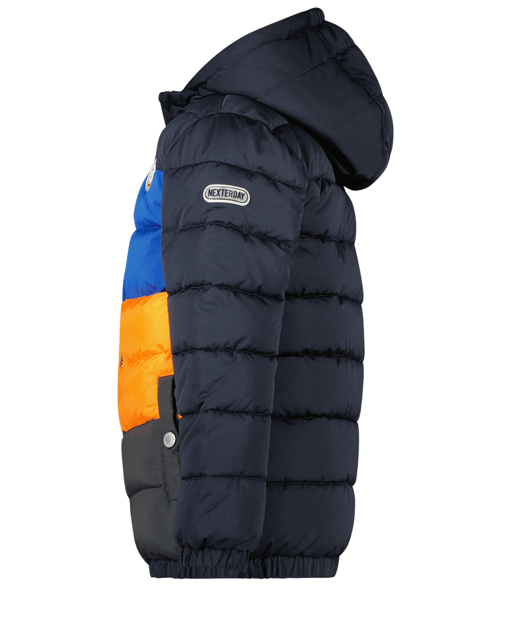 Hoe cool is deze colorblock jas met neon oranje? In deze TYGO & vito winterjas met vaste capuchon kun je veilig op de fiets naar school door de reflecterende badge op de linkermouw. Dat kan prima in deze stevige, waterafstotende jas waar de buitenstof en vulling ook nog eens gemaakt zijn van 100% receycled polyester. Zoals je gewend bent van de TYGO & vito jassen zijn de binnenkant en steekzakken gevoerd met fijne zachte fleece waardoor hij heerlijk zacht aanvoelt. Om veilig op de fiets naar school te gaan zit op de linkermouw de reflecterende badge SEE YOU NEXTERDAY. TYGO & vito for a better nexterday!