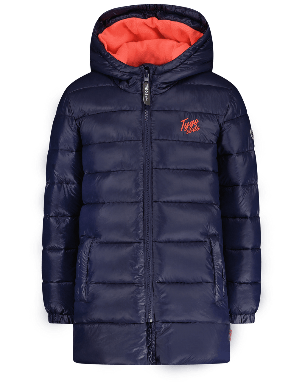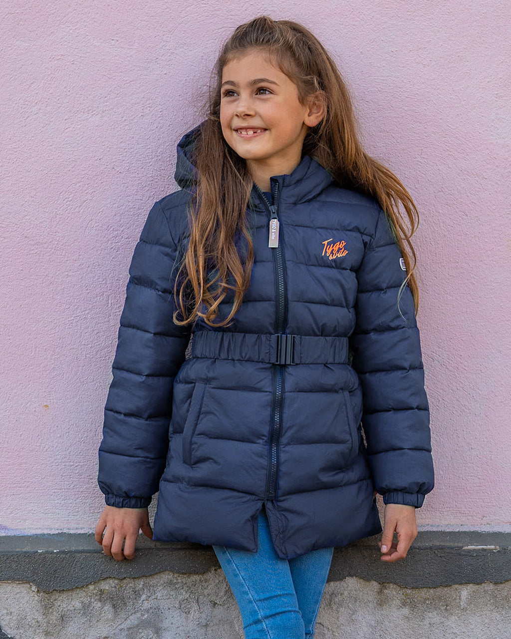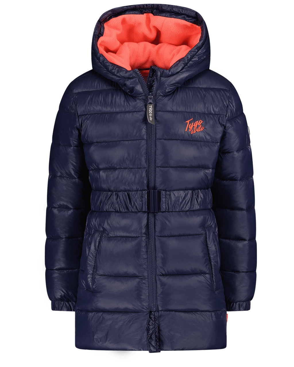 In deze mooie donker blauwe winterjas met vaste capuchon voor de TYGO & vito girls kun je veilig op de fiets naar school door de reflecterende badge op de linkermouw. Zoals je gewend bent van de TYGO & vito jassen zijn de binnenkant en steekzakken gevoerd met fijne zachte fleece waardoor hij heerlijk zacht aanvoelt.