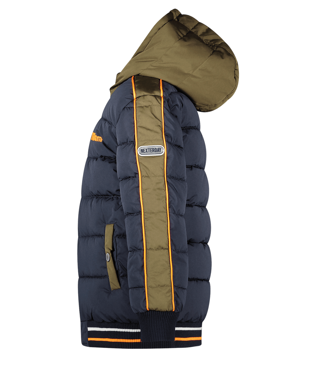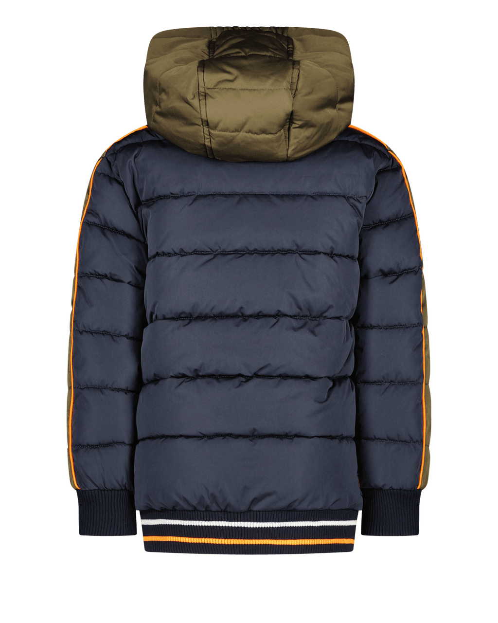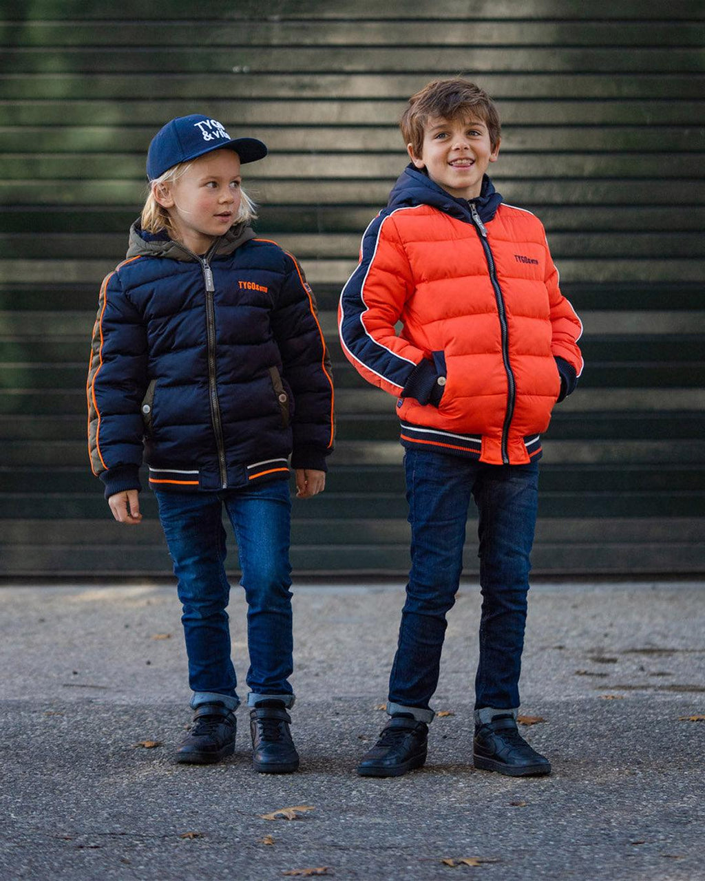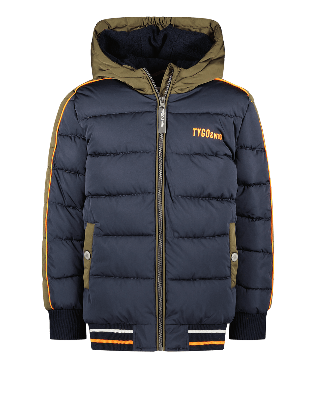 Lekker sportief deze donkerblauwe jas van TYGO & vito boys. De jas is met armygroene vaste capuchon. Door de reflecterende badge op de linker mouw kun je veilig op de fiets naar school. De mouwen zijn voorzien van elastische rib boorden voor een beter draag comfort. Buitenspelen en erop uit in de natuur? Dat kan prima in deze stevige, waterafstotende jas waar de buitenstof en vulling ook nog eens gemaakt is van 100% receycled polyester. Zoals je gewend bent van de TYGO & vito jassen zijn de binnenkant en steekzakken gevoerd met fijne zachte fleece waardoor hij heerlijk zacht aanvoelt. TYGO & vito for a better nexterday!
